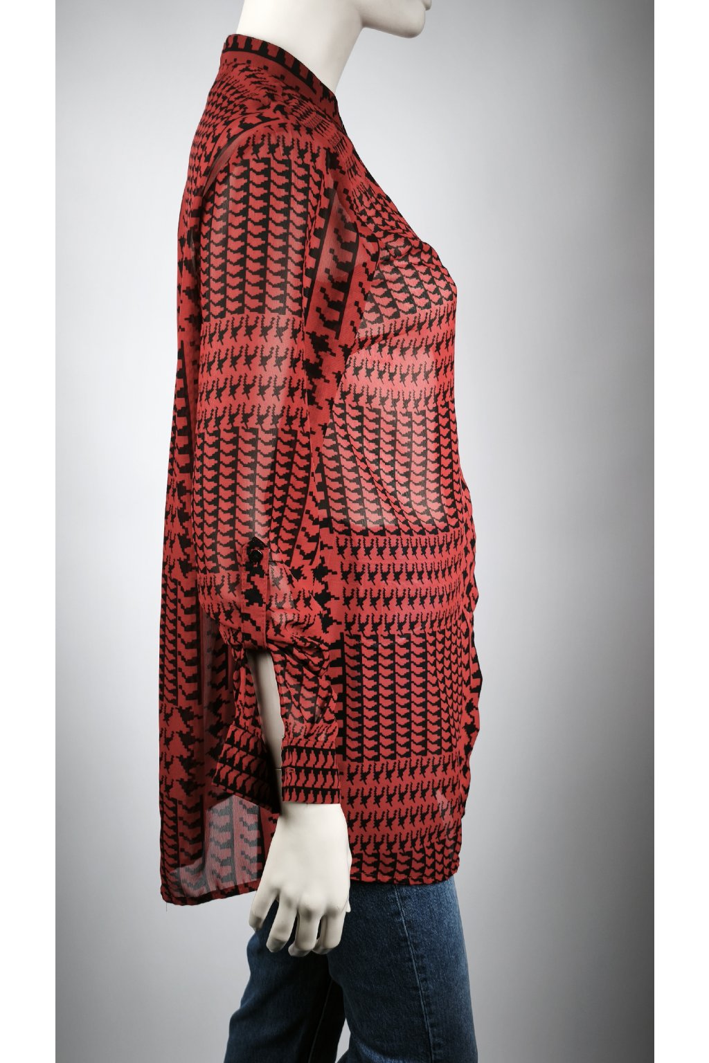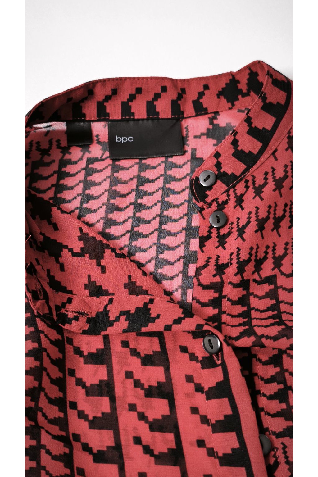 Štýlová červená blúzka s geometrickým vzorom od značky BPC.