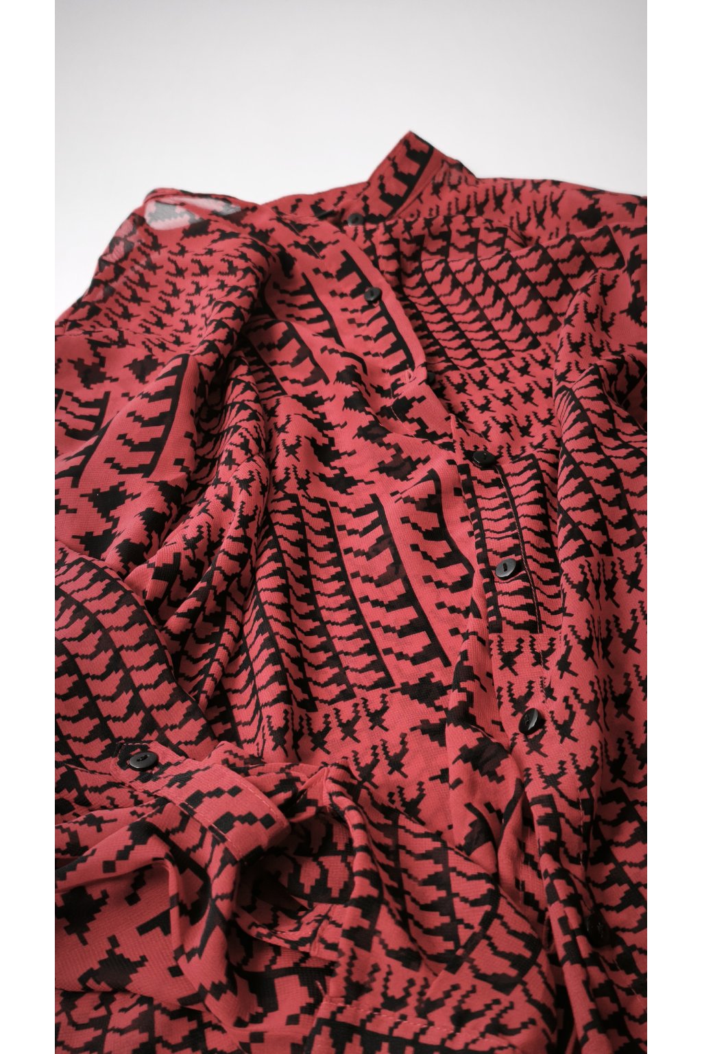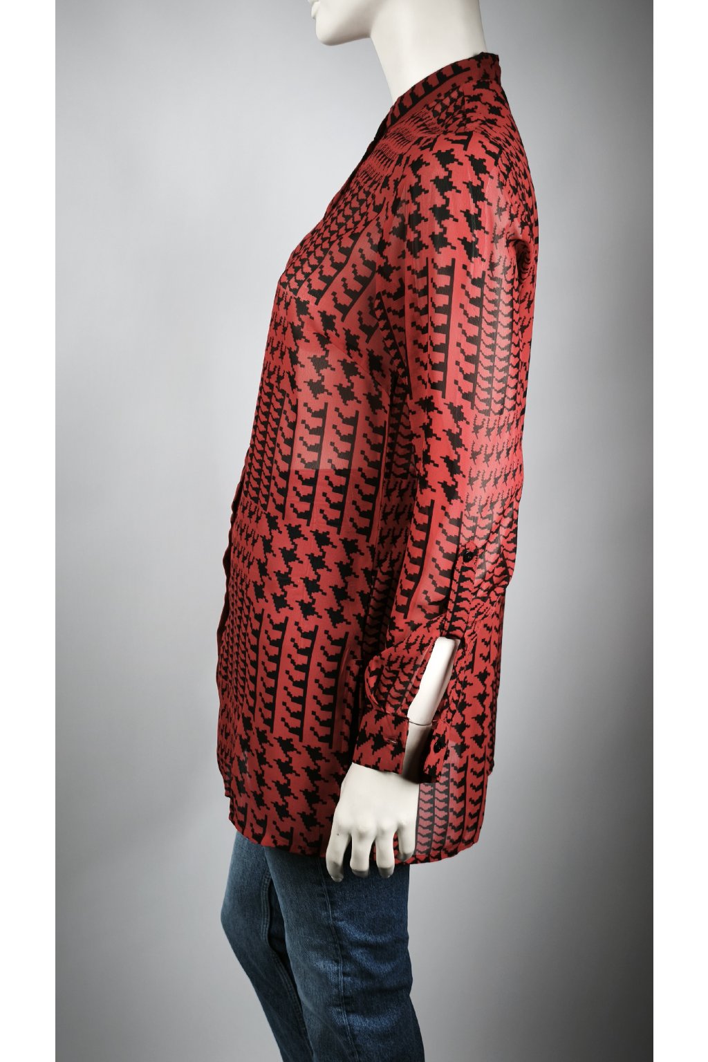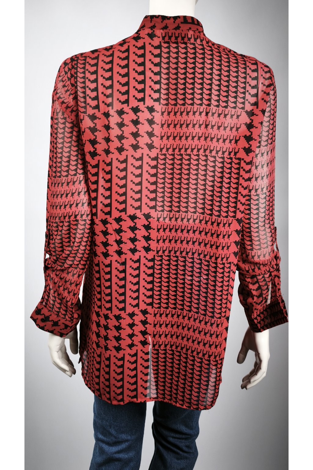 Táto výrazná červená blúzka s geometrickým vzorom prináša moderný nádych do vášho šatníka. Je ideálna pre každodenné nosenie a poskytuje pohodlie aj štýl.