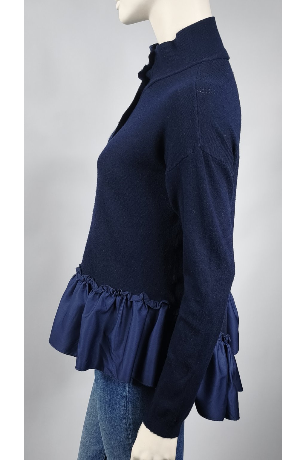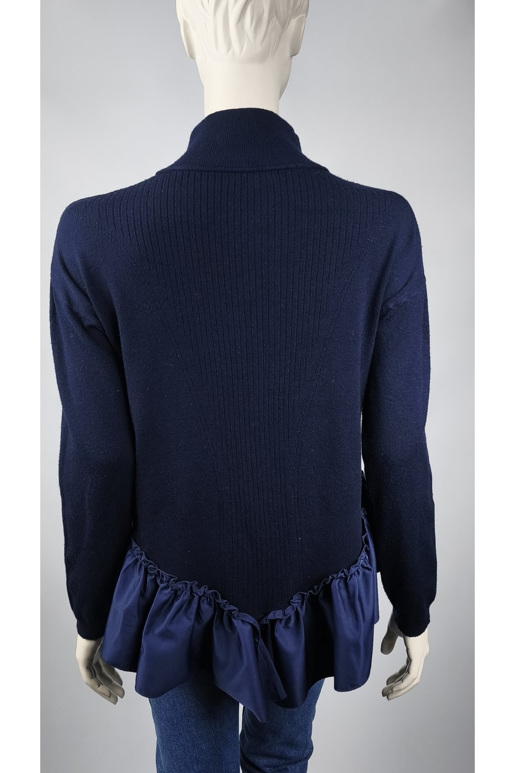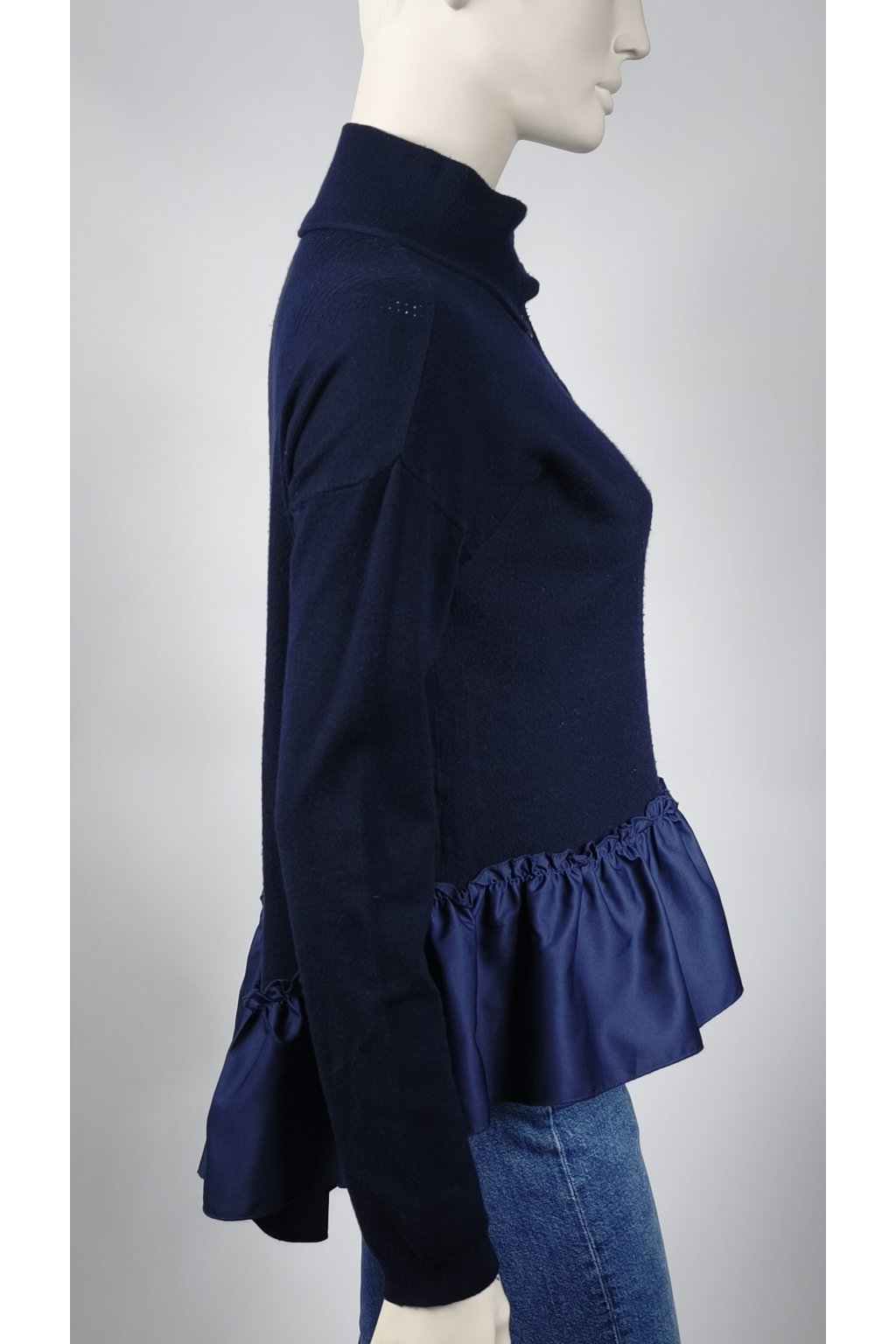 Táto modrá blúzka od značky Louise Orop je elegantným kúskom s výrazným volánovým detailom v spodnej časti. Je ideálna na zvýraznenie vášho štýlu pri rôznych príležitostiach. Poznámka: Produkt má vadu, chýba jeden gombík, čo je zohľadnené v cene.