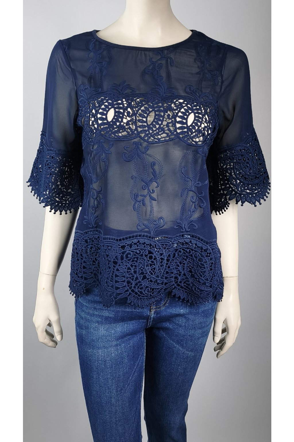 Elegantná modrá blúzka LINDEX zaujme čipkovanými detailmi a jemným materiálom. Ideálna do práce aj na voľný čas.