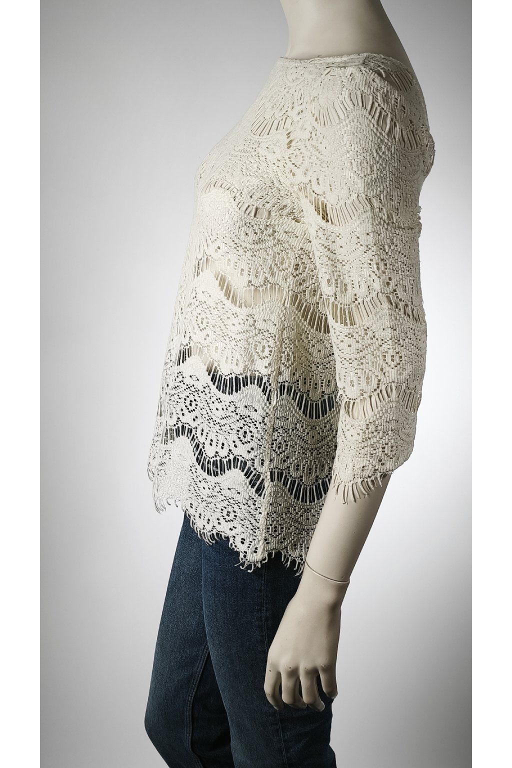 Táto krémová blúzka od ZARA je stelesnením elegancie s jemnými čipkovými vzormi, ktoré vytvárajú sofistikovaný vzhľad. Jemne povyťahované nitky dodávajú tomuto kúsku unikátny charakter, ktorý zaujme na prvý pohľad.
