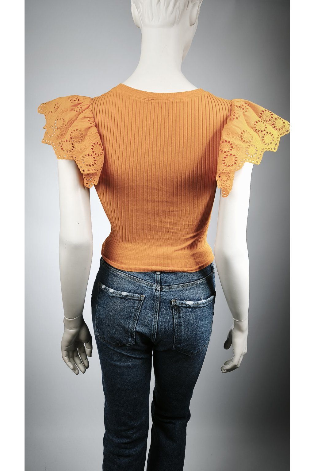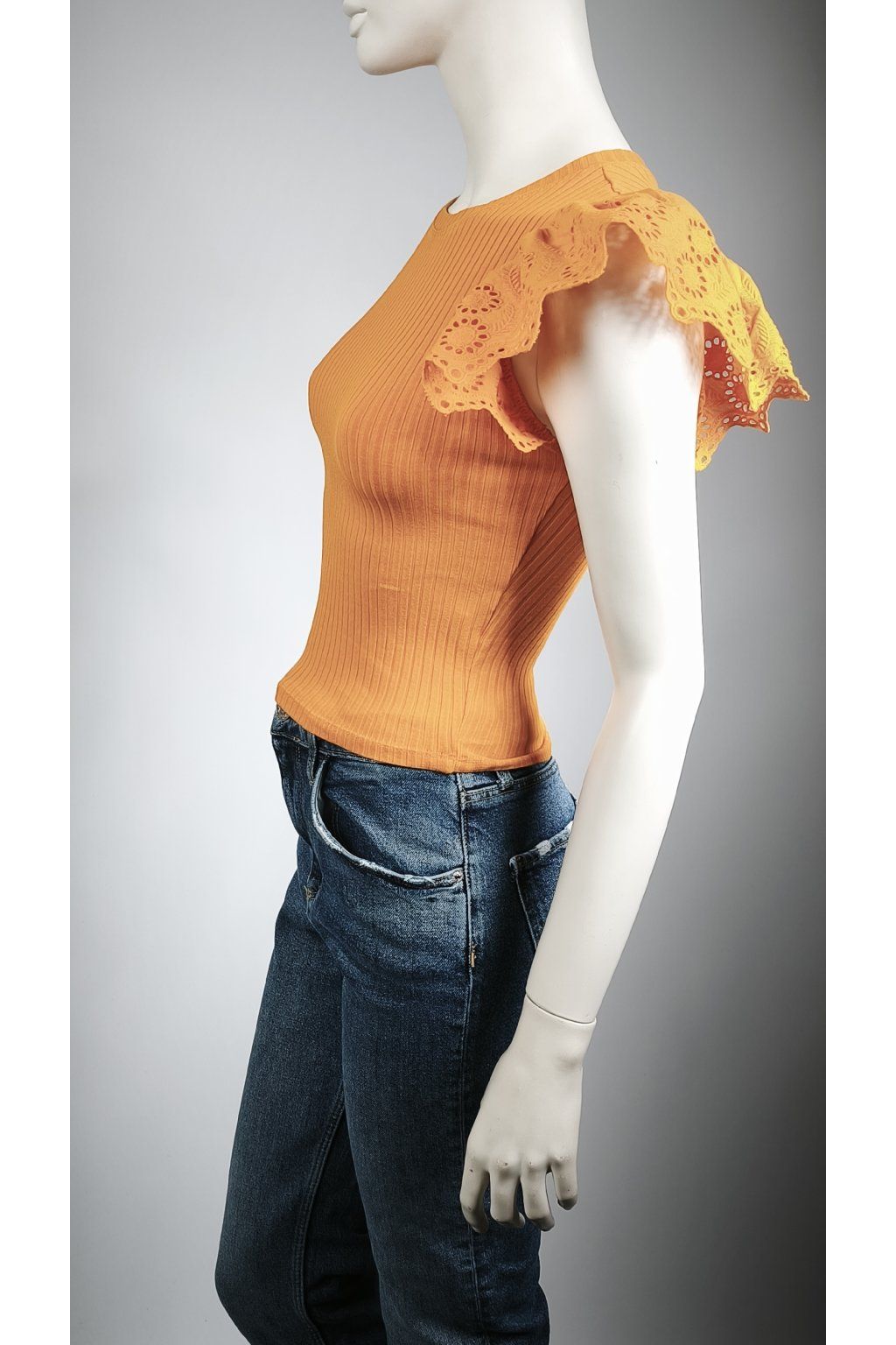 Elegantná oranžová blúzka s vyrezávanými rukávmi.