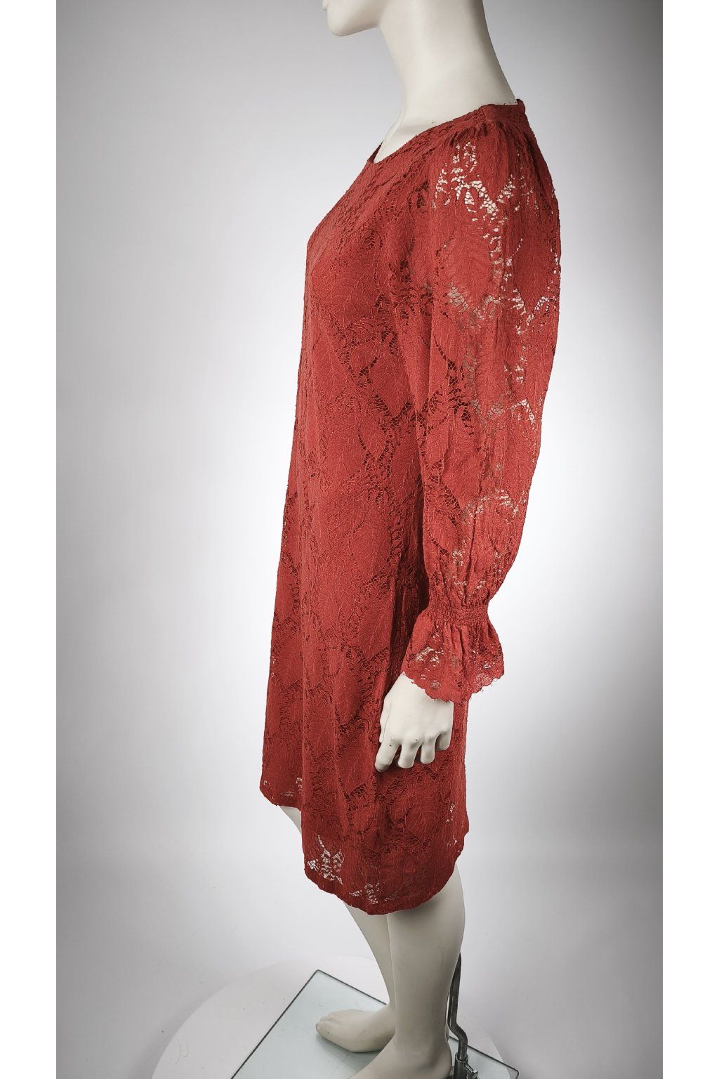 Červené šaty s dlhými rukávmi a jemným čipkovaným vzorom dodajú vášmu outfitu šmrnc. Ich elegantný strih je ideálny na rôzne príležitosti, zatiaľ čo pohodlný materiál zaručuje komfort pri nosení.