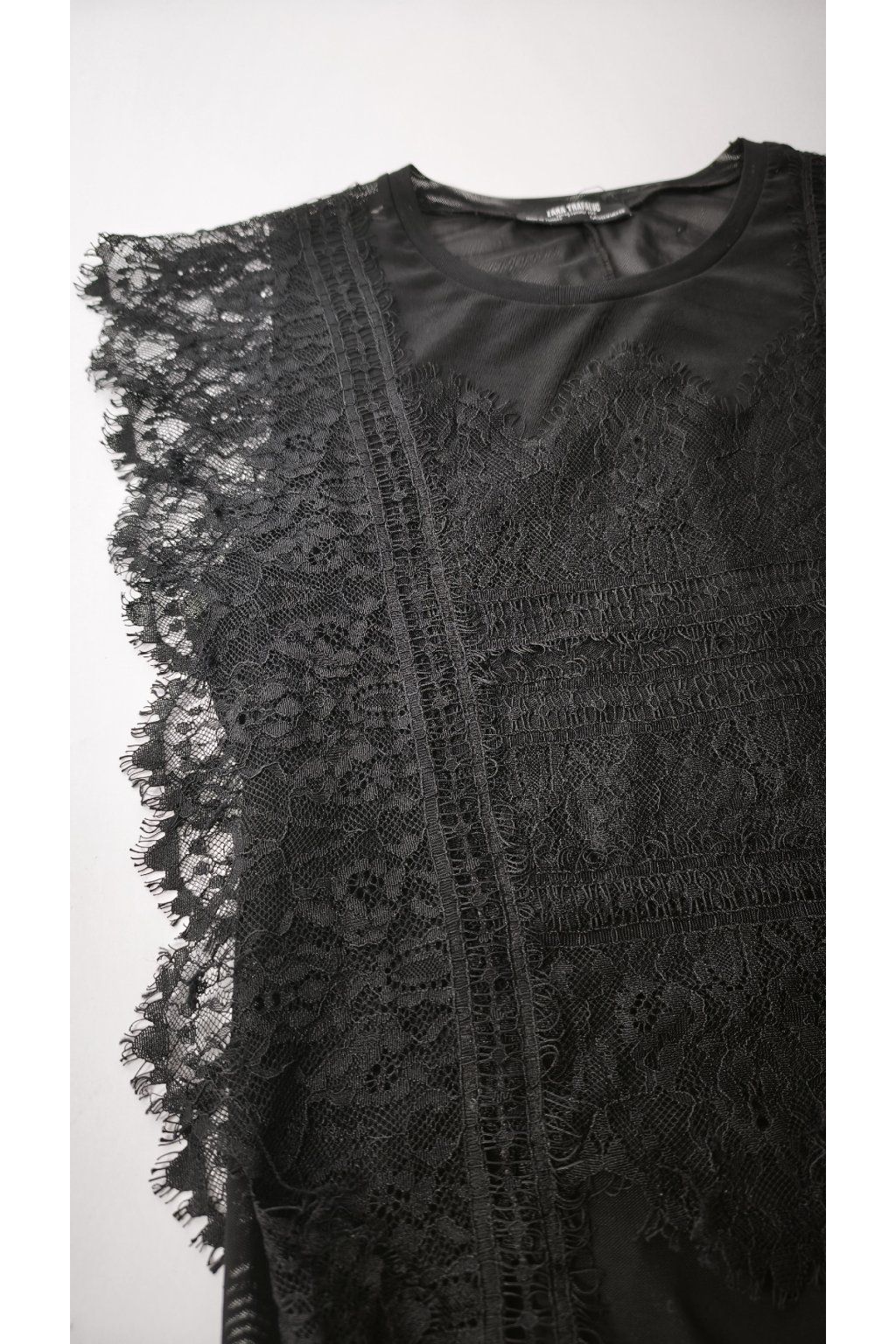 Elegantná čierna čipkovaná blúzka značky ZARA, veľkosť M.