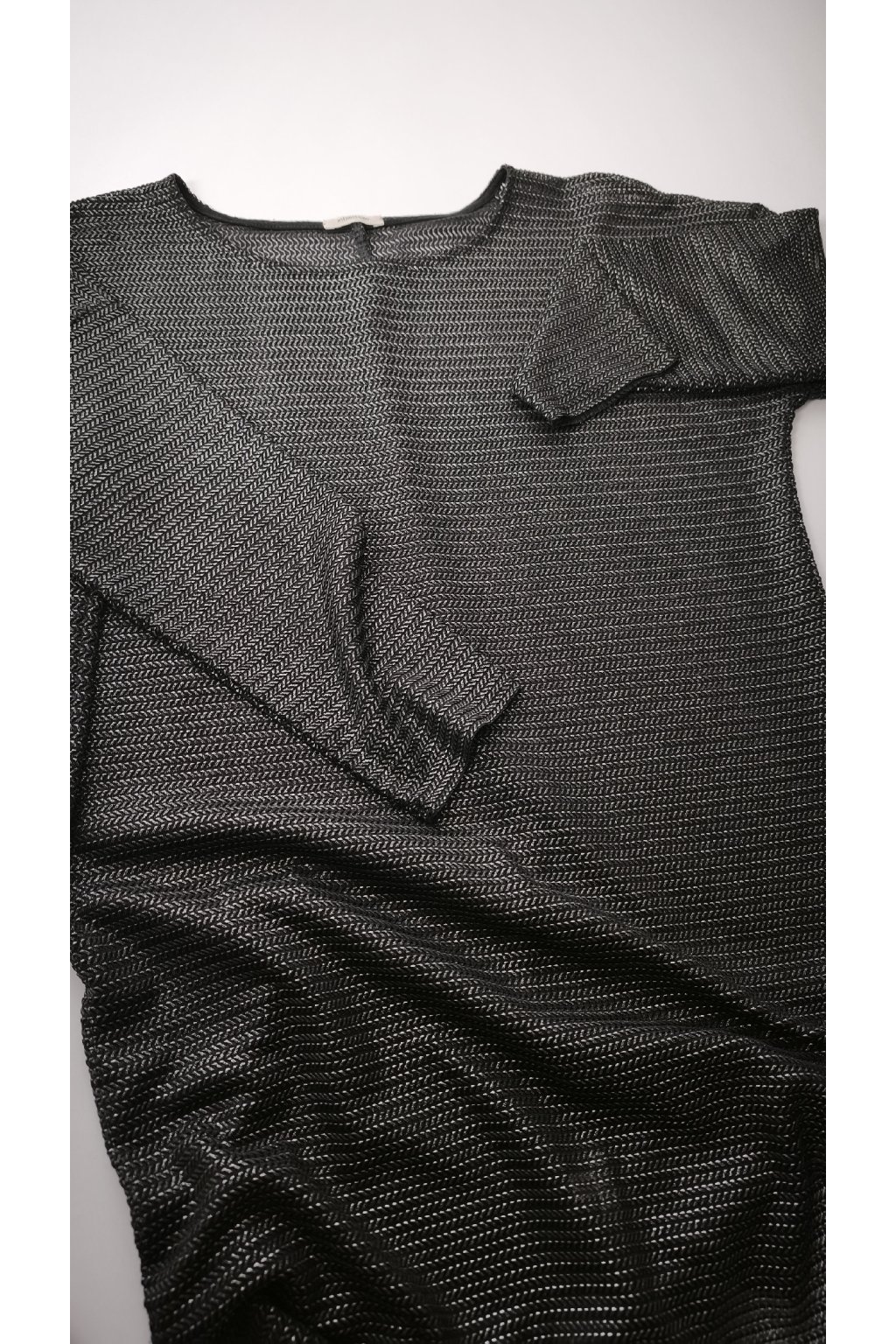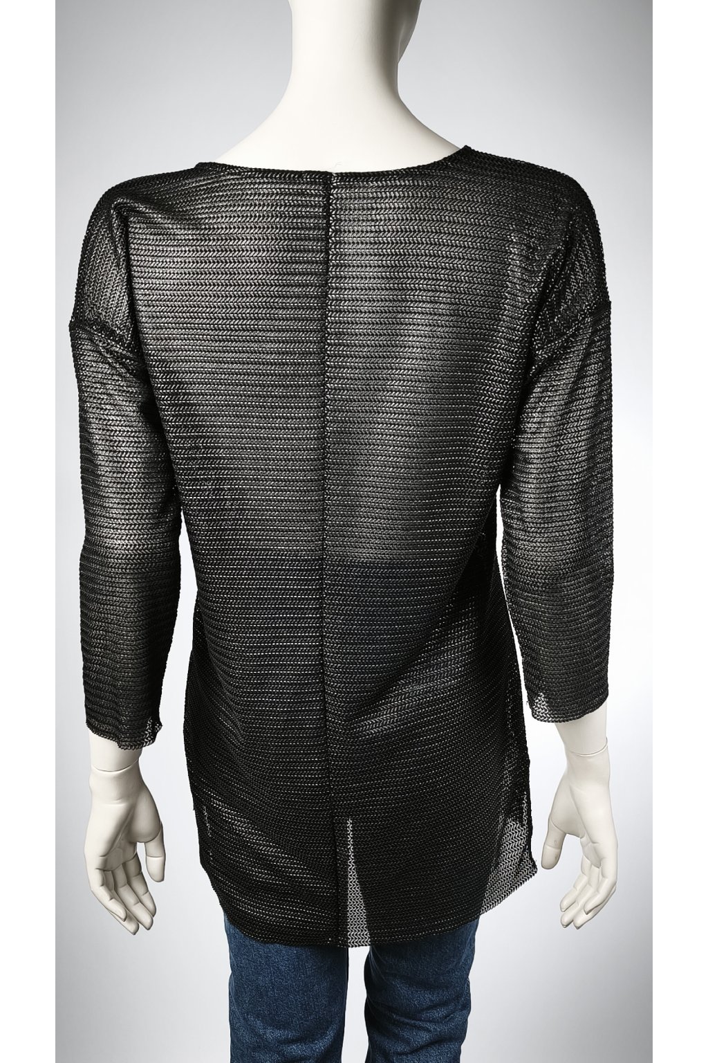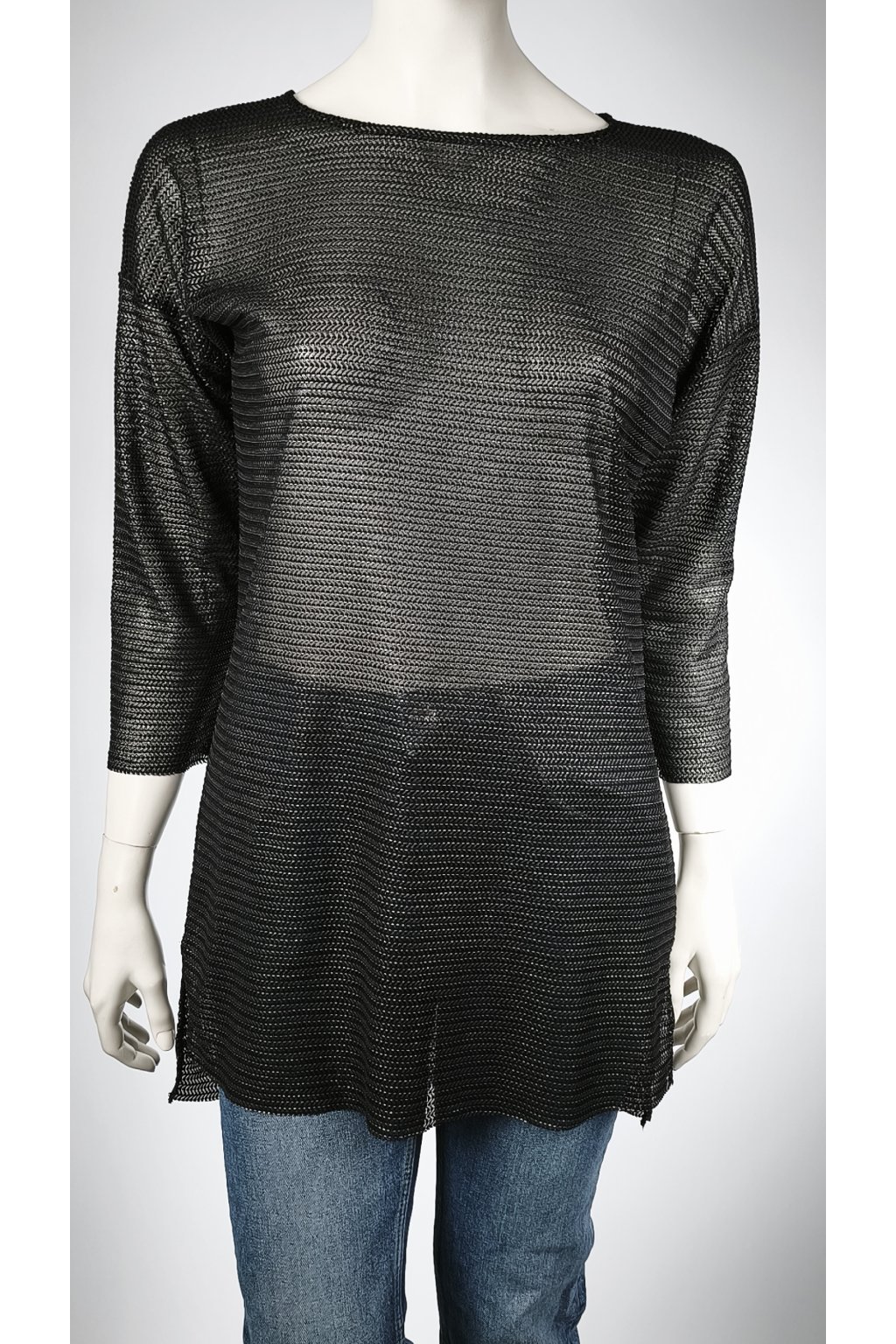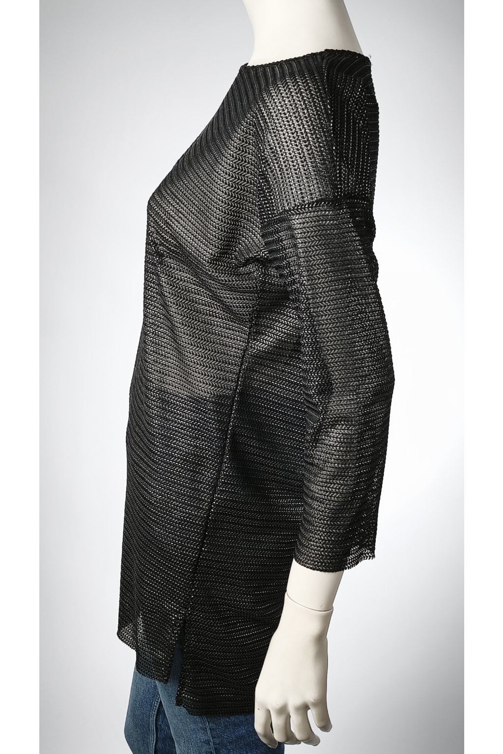 Elegantná čierna priesvitná blúzka s moderným dizajnom.