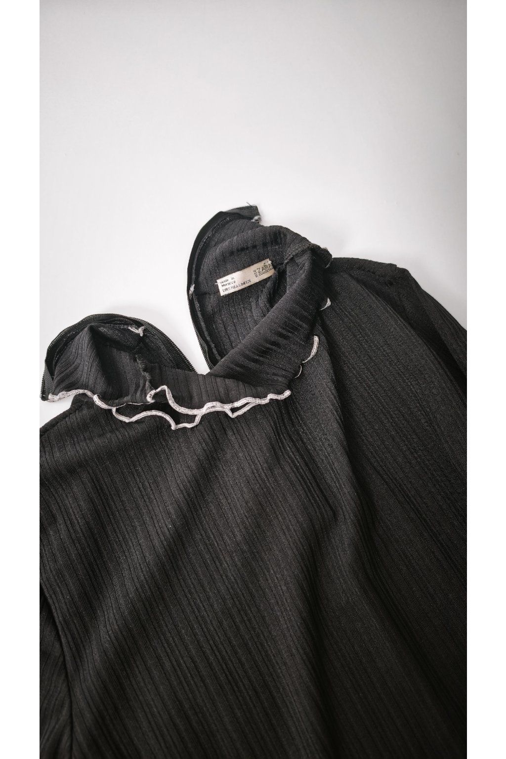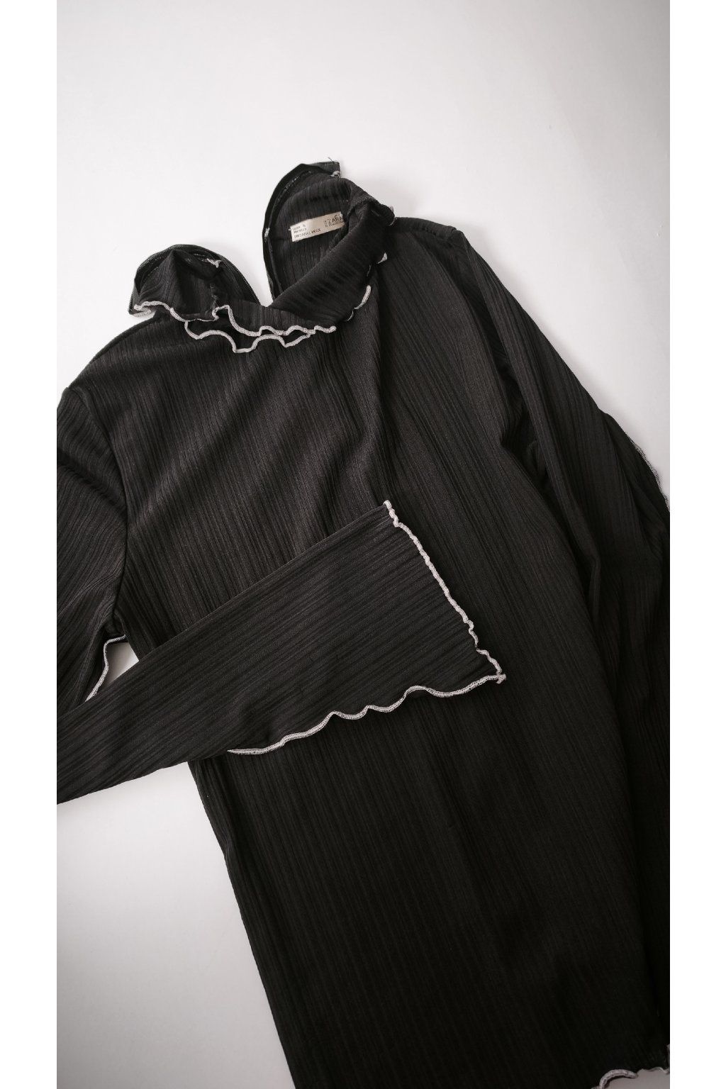 Tento čierny rolák od značky Zara zaujme svojím jemným rebrovaným vzorom a štýlovým stojačikom. Dlhé rukávy a priliehavý strih dodávajú kúsku nadčasový vzhľad.