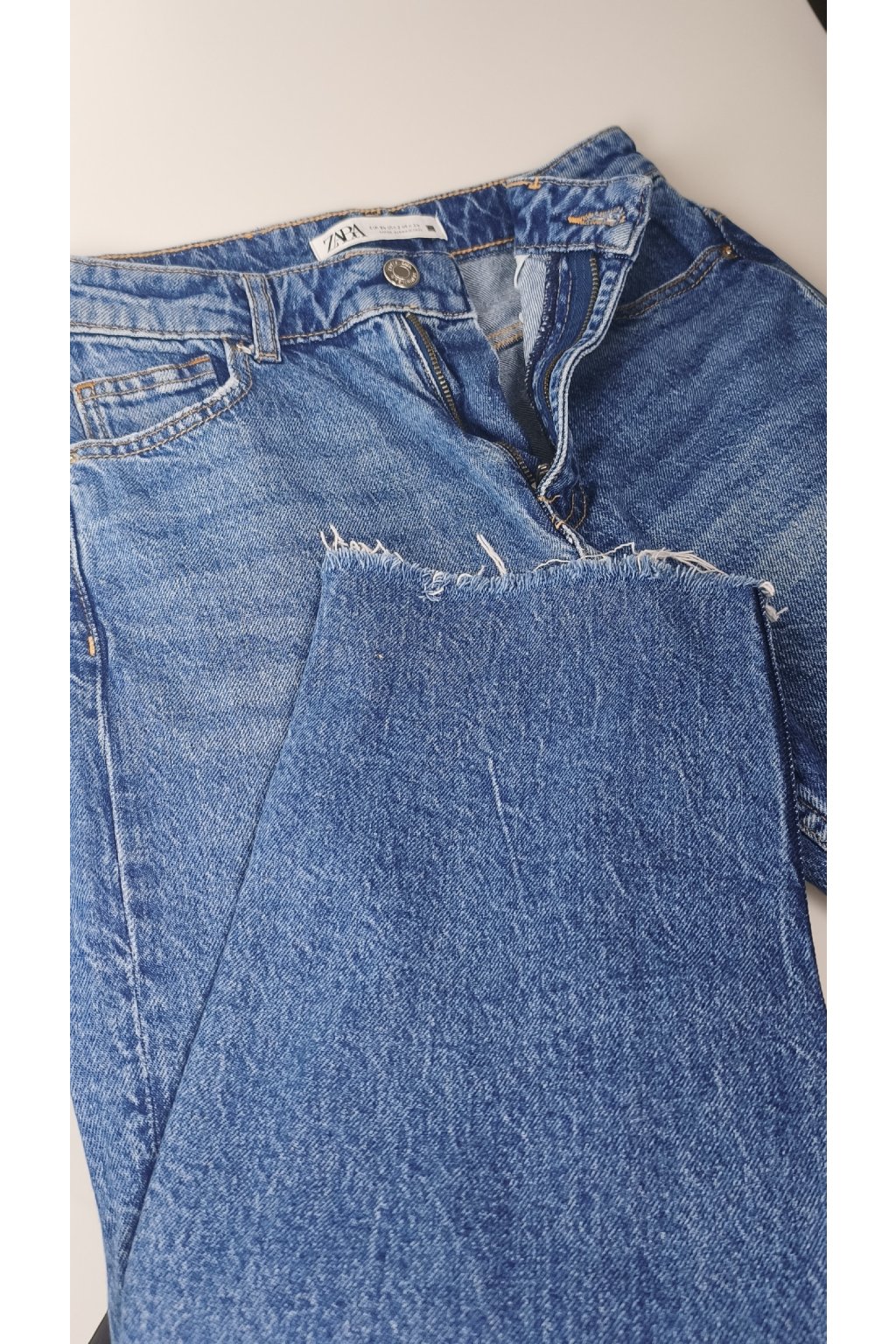 Tieto modré džínsy od ZARA predstavujú klasický a štýlový kúsok, ktorý nesmie chýbať vo vašom šatníku. Majú pohodlný strih a jemne ošúchaný vzhľad, ktorý dodáva moderný nádych. Dĺžka nohavíc je skrátená s nezakončeným okrajom pre trendy vzhľad.