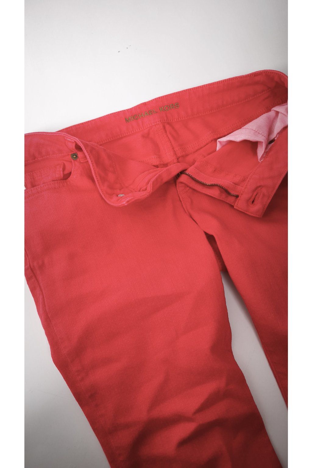 Očarujúce červené nohavice Michael Kors, ktoré dodajú vášmu outfitu šmrnc. Ich pohodlný strih je ideálny pre každodenné nosenie a výrazná farba zaručí, že budete neprehliadnuteľná.