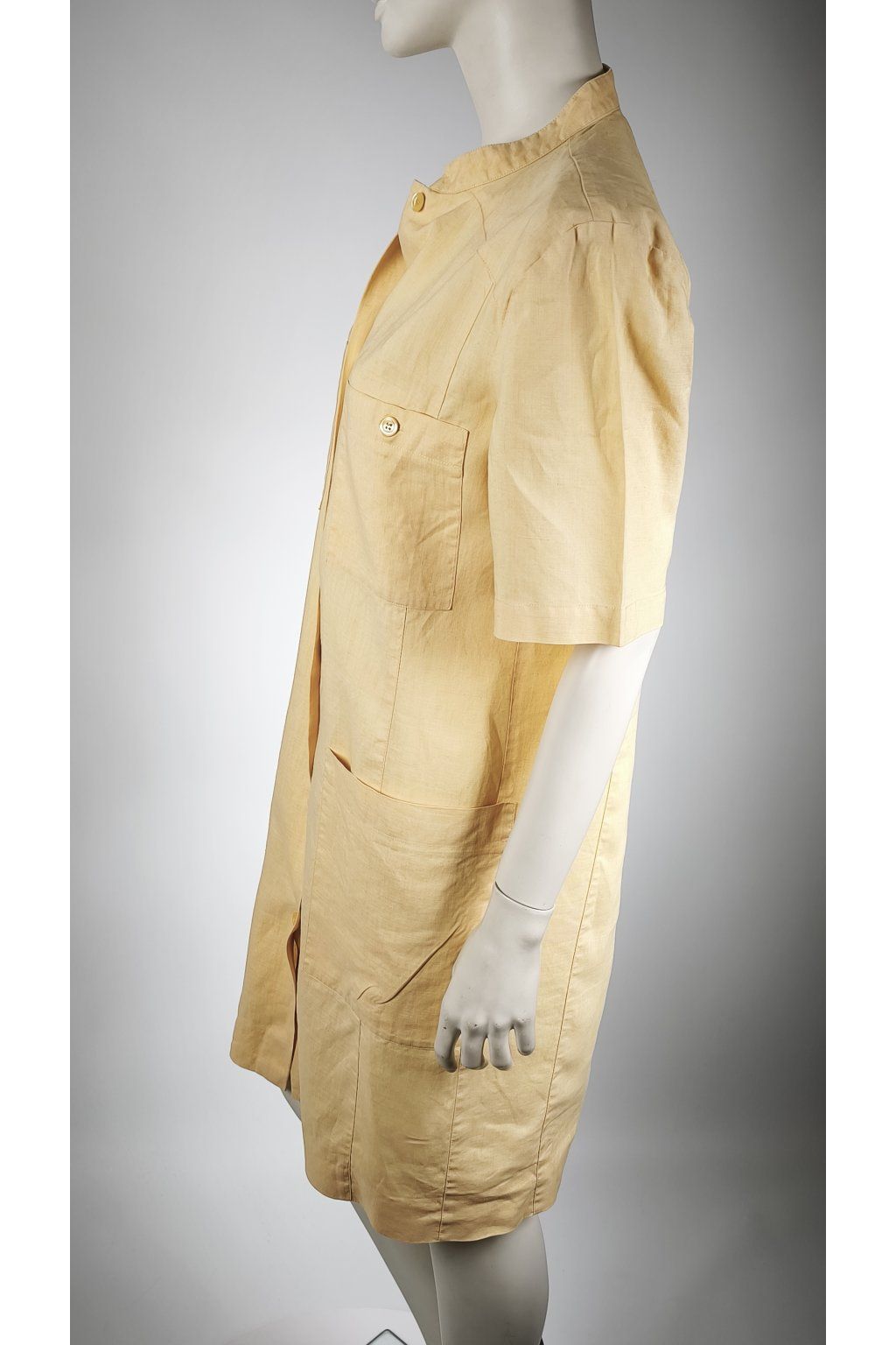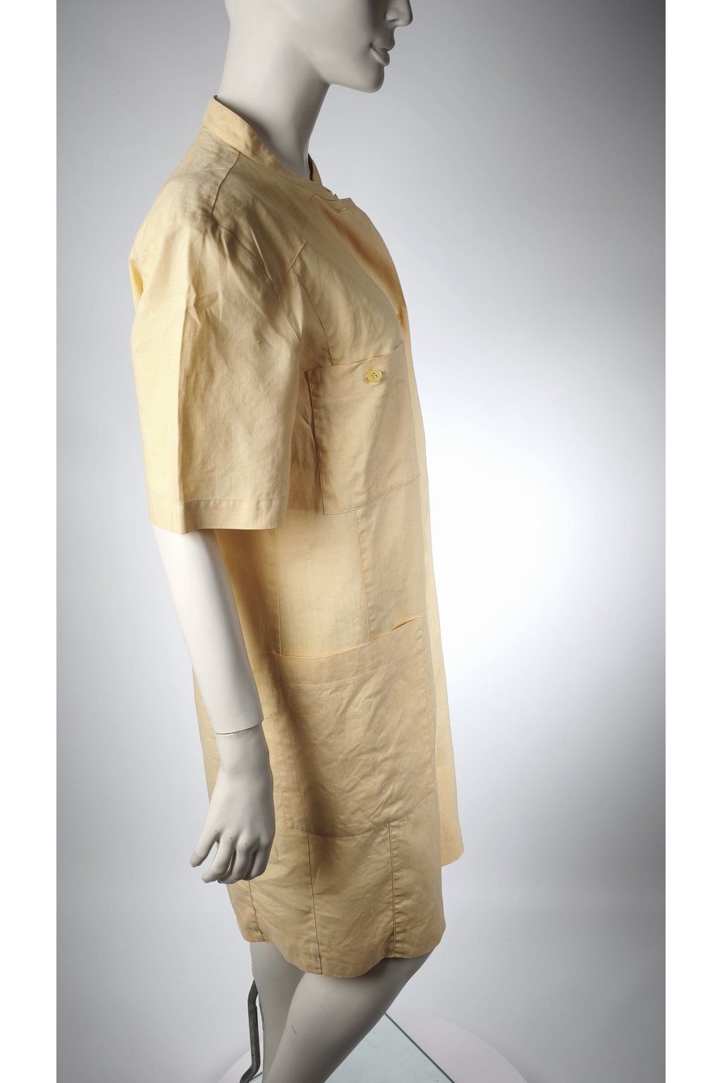 Tieto elegantné žlté šaty od značky CACHAREL sú dokonalým kúskom do vášho šatníka. Ich jednoduchý strih s krátkymi rukávmi a gombíkovým zapínaním dodáva šatám sofistikovaný vzhľad, zatiaľ čo výrazná farba osvieži váš outfit.
