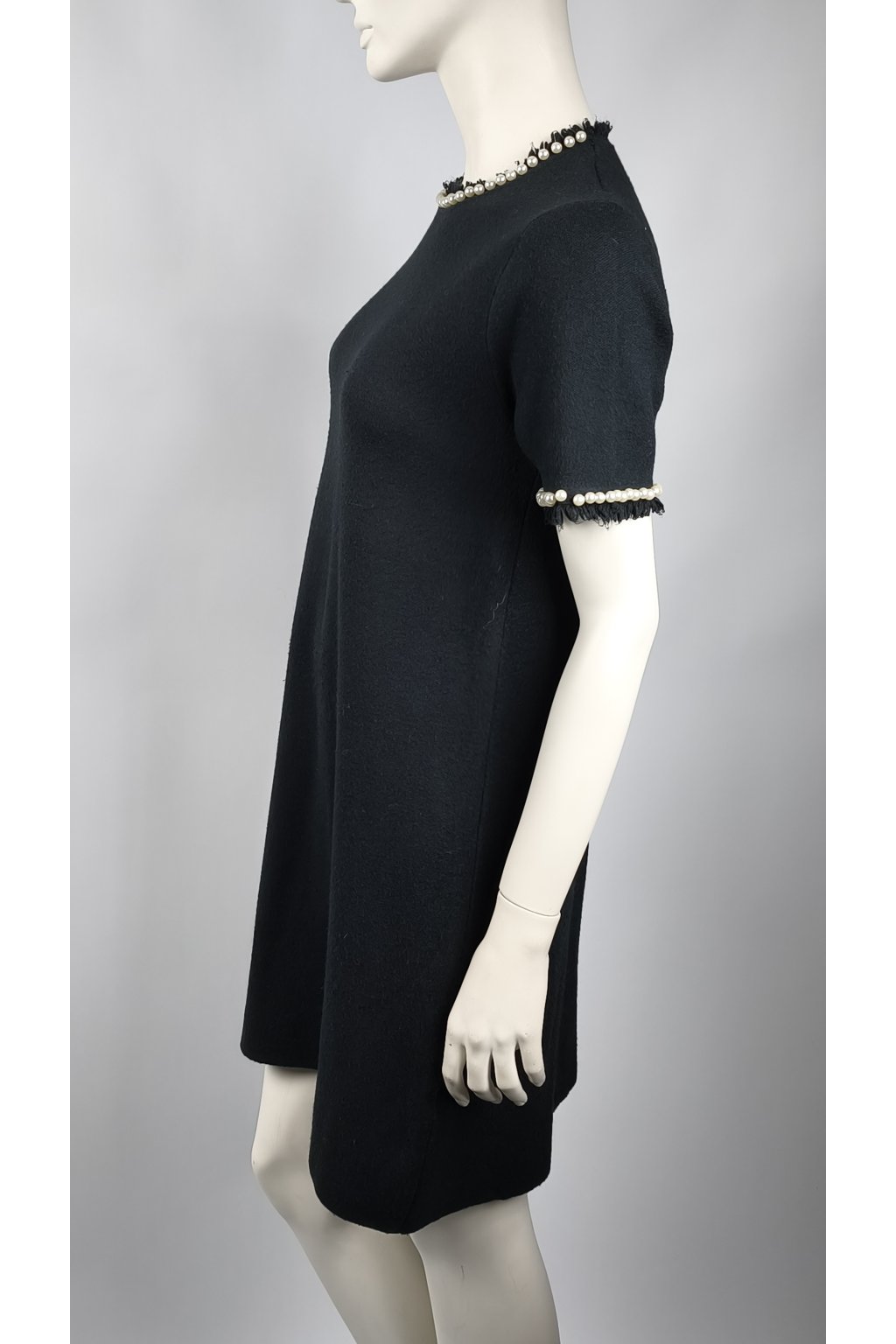 Elegantné čierne šaty od MAGLIFICIO S.L. sú dokonalým spojením štýlu a rafinovanosti. Krásne perlové lemovanie na výstrihu a rukávoch pridáva šatám luxusný nádych, zatiaľ čo jednoduchý strih zaručuje pohodlie a všestrannosť.