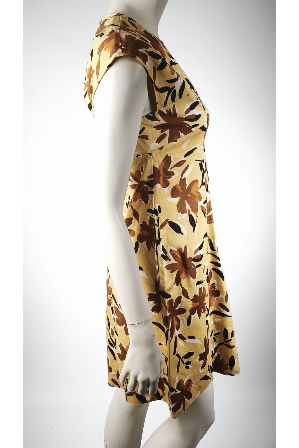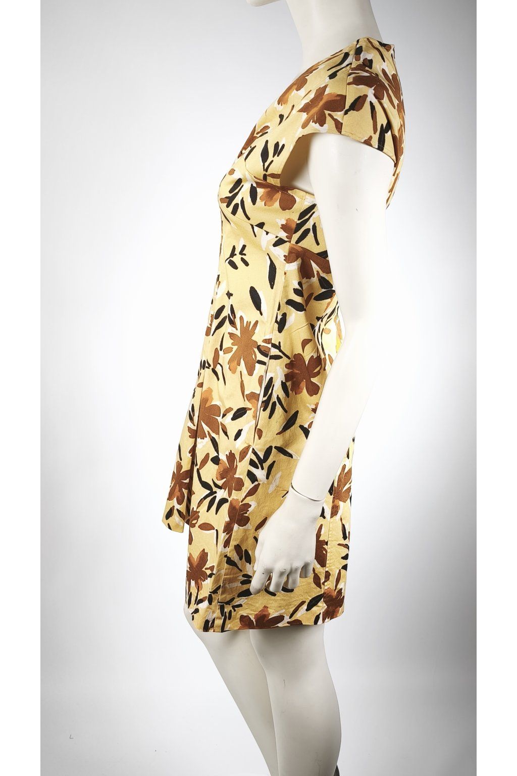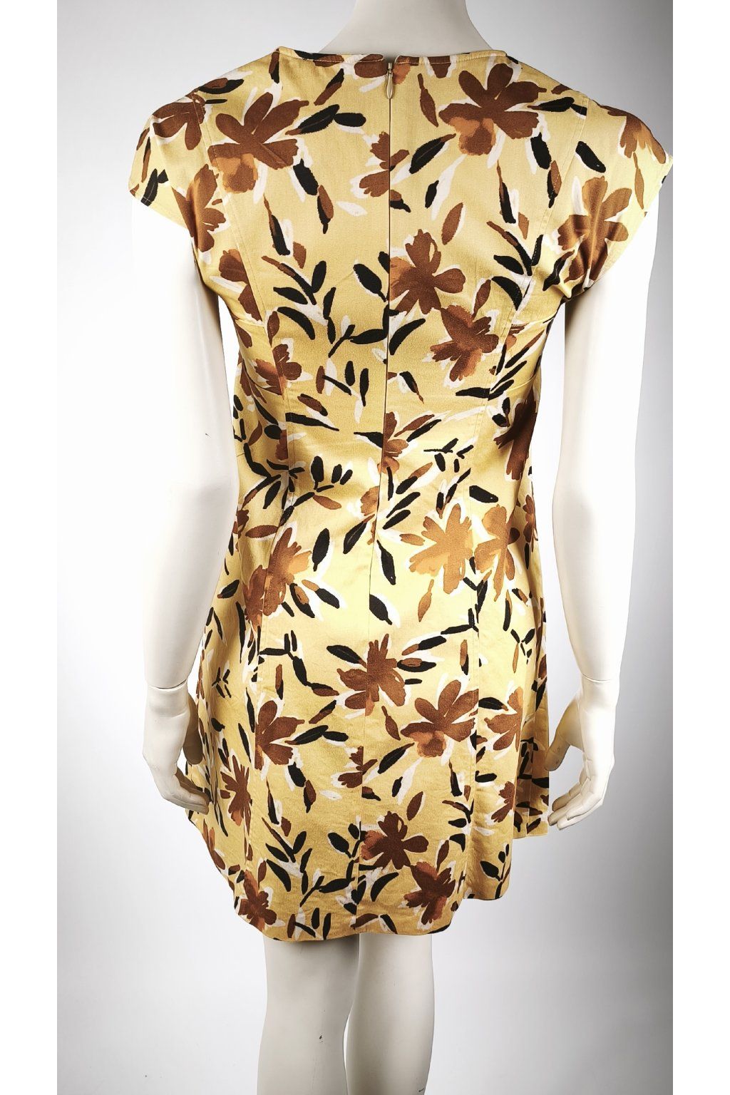 Tieto elegantné vintage šaty od MAX & CO sú dokonalým prejavom štýlu a jemnosti. Horčicový podklad je oživený výrazným kvetinovým vzorom v odtieňoch hnedej a čiernej, čo dodáva šatám jedinečný retro šarm. Ich strih je navrhnutý tak, aby lichotil postave a poskytoval maximálne pohodlie.