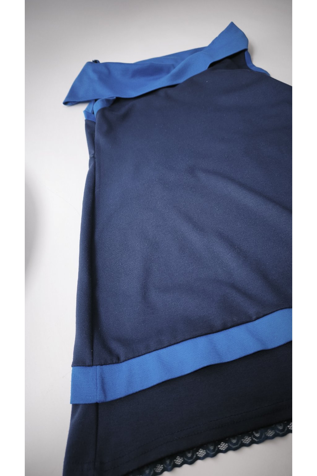 Elegantné modré šaty s kontrastnými detailmi od značky PIAZZA ITALIA.