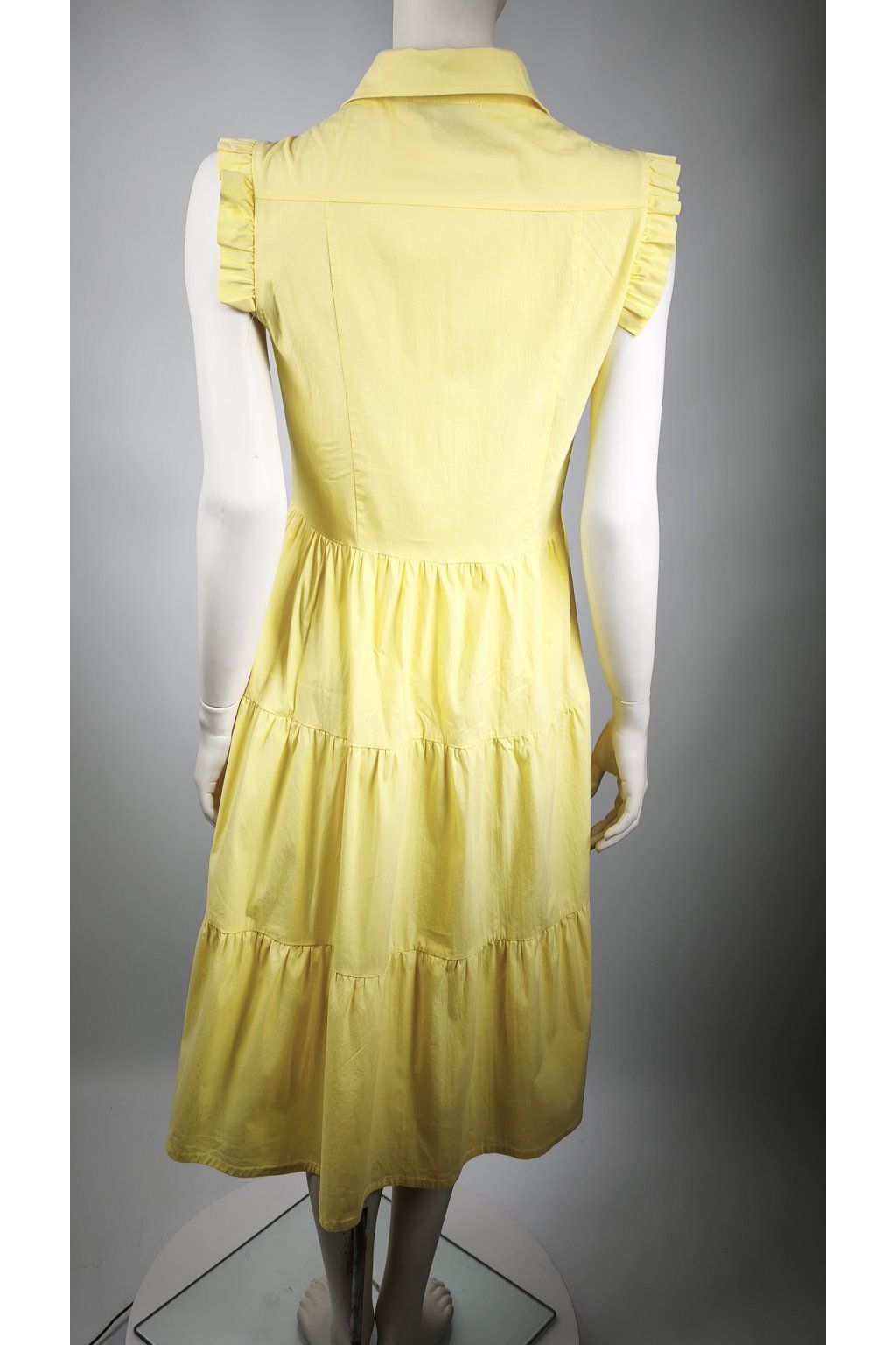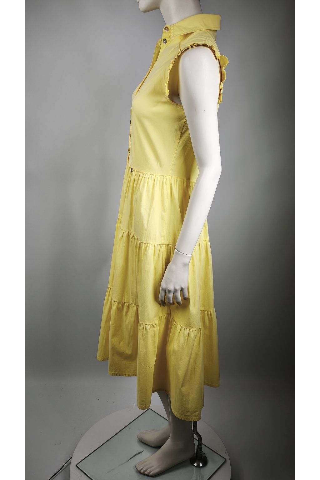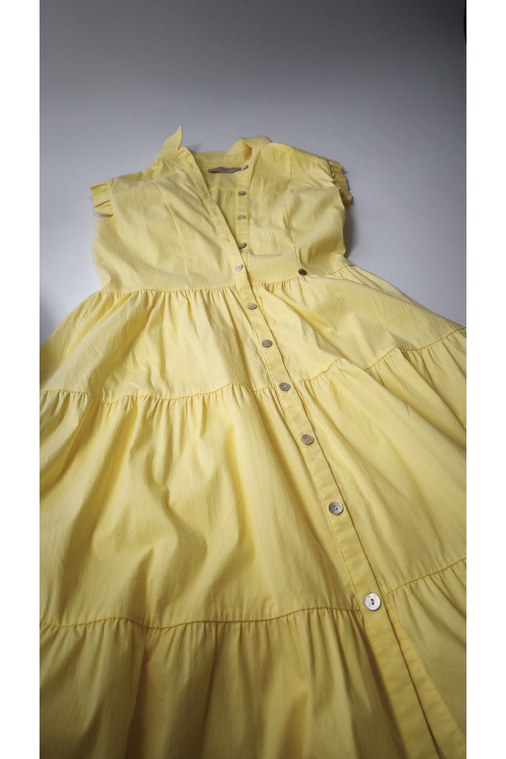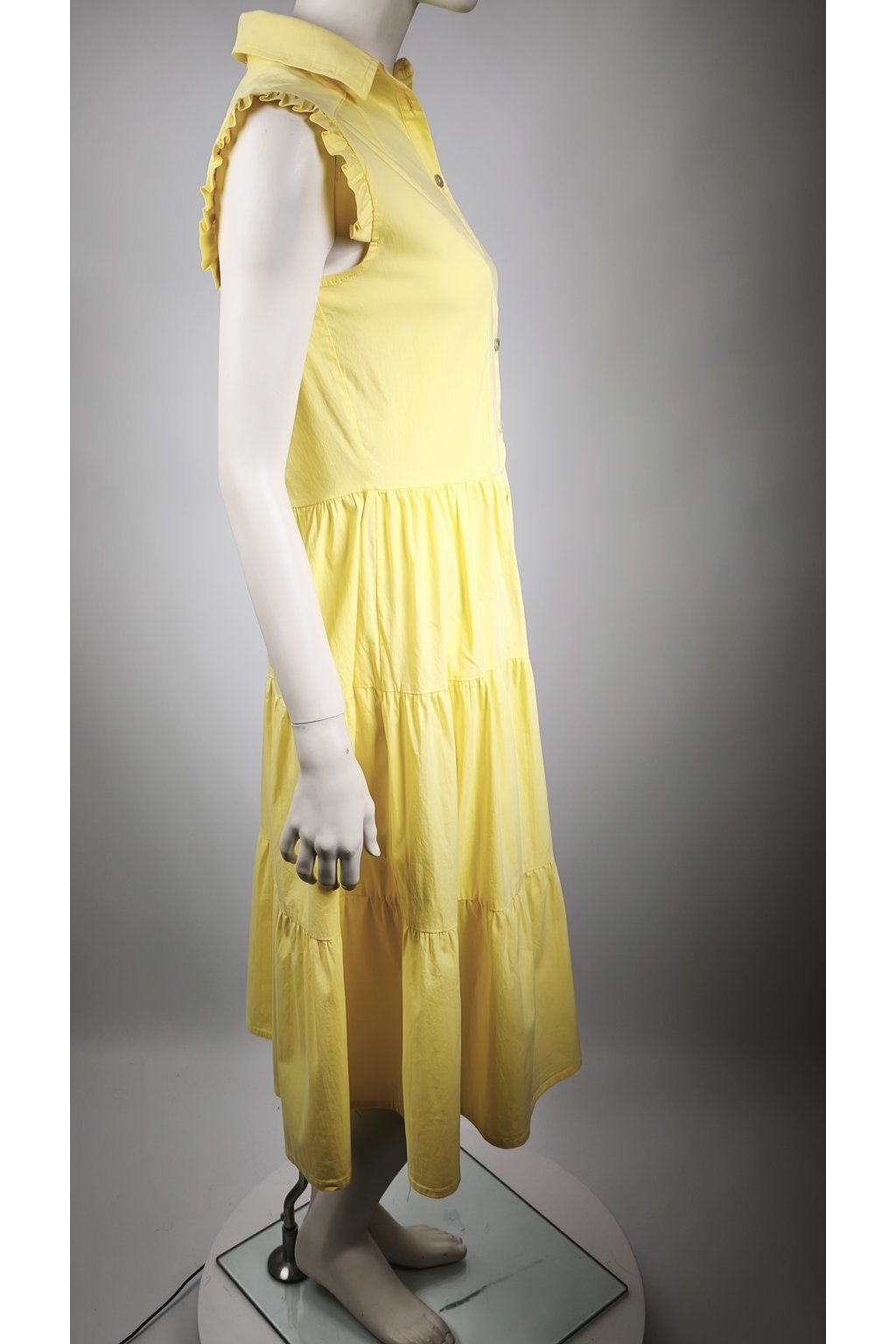 Žiarivé žlté šaty RINASCIMENTO s volánovými rukávmi a gombíkovým zapínaním.