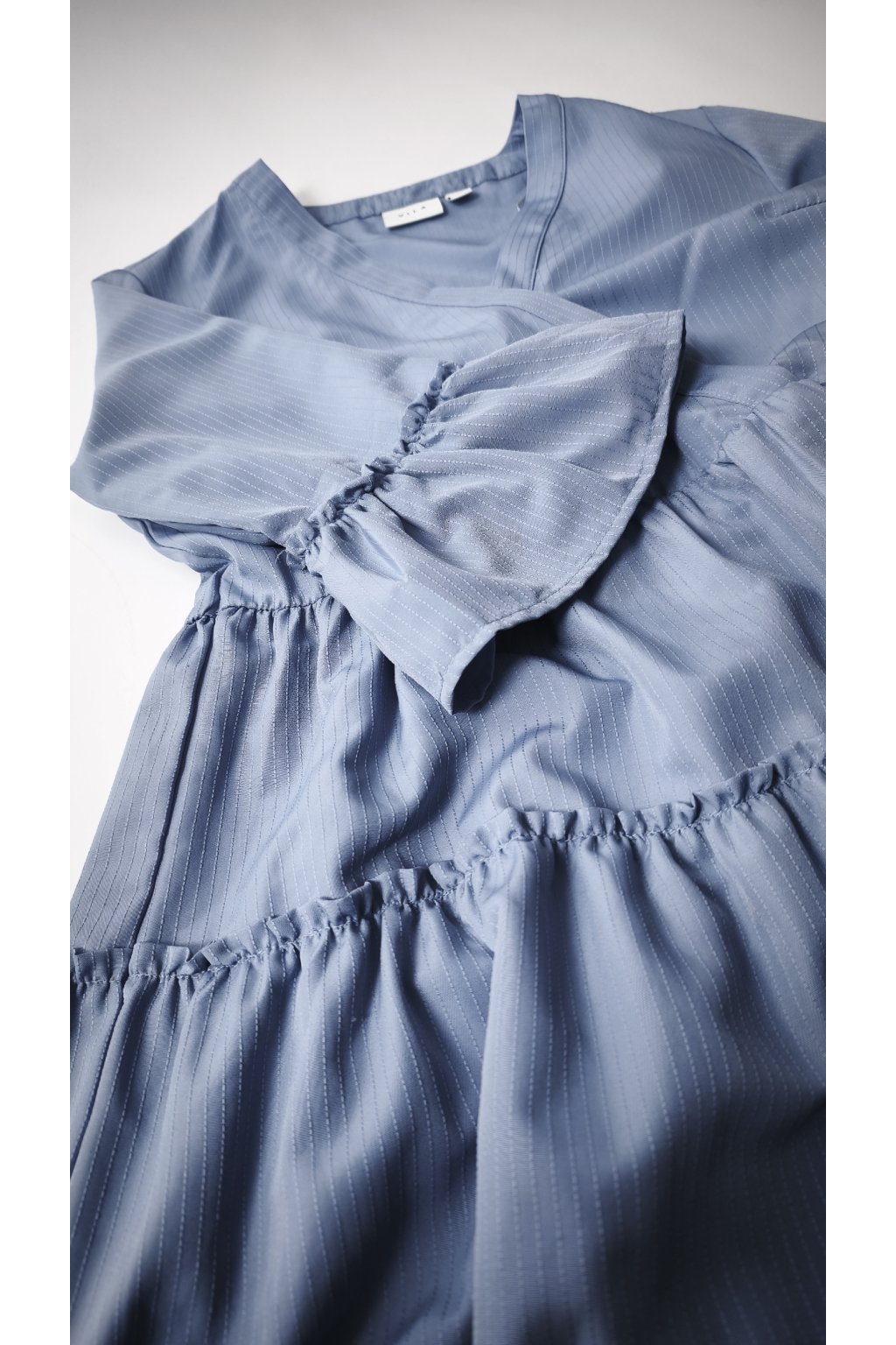 Elegantné šaty od značky VILA v krásnej modrej farbe sú dokonalým kúskom pre váš šatník. Ich voľný strih s jemnými volánmi dodáva šatám vzdušnosť a ženskosť, zatiaľ čo recyklovaný polyester v kombinácii s klasickým polyesterom zaručuje, že sa budete cítiť pohodlne po celý deň.