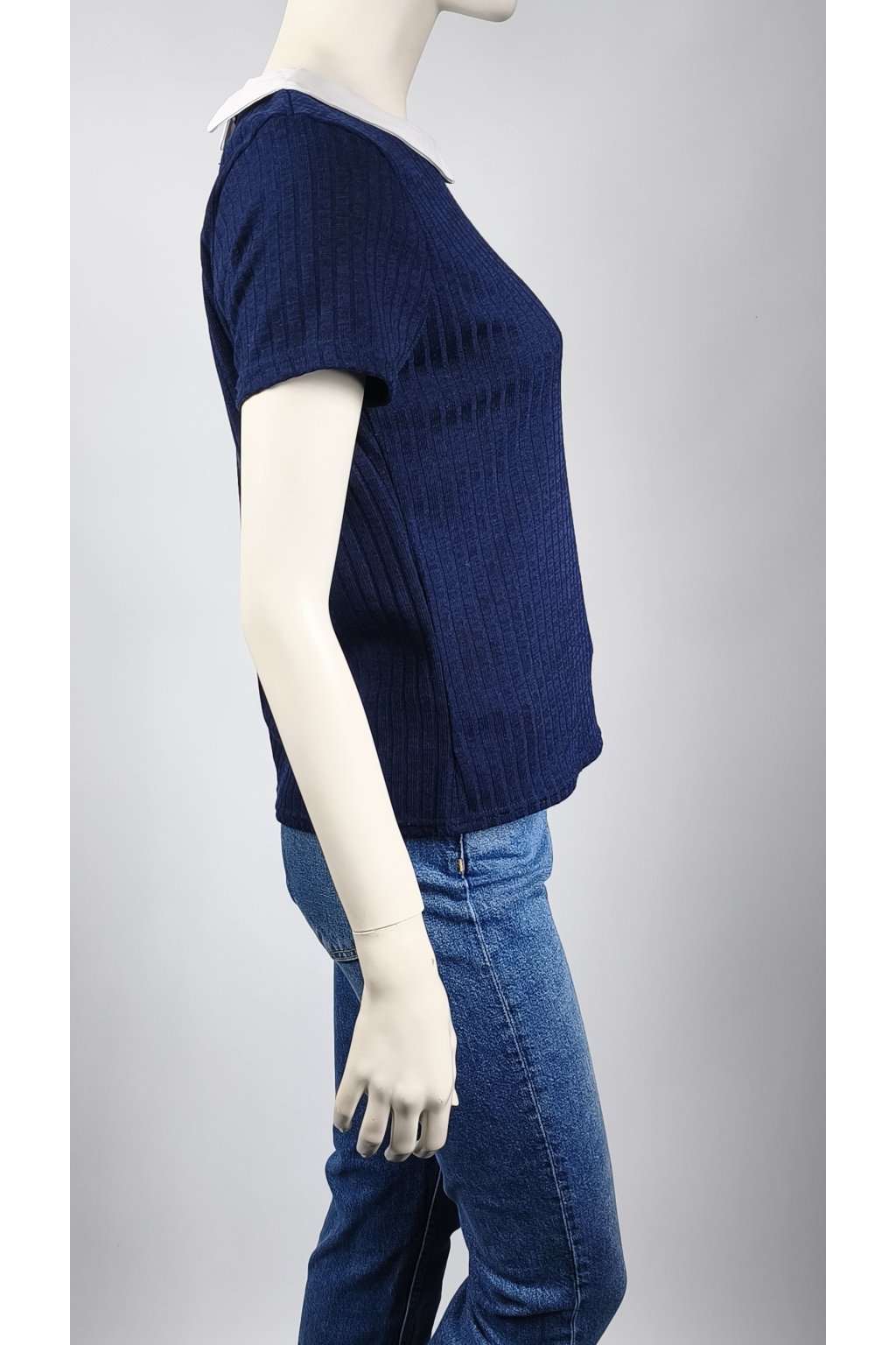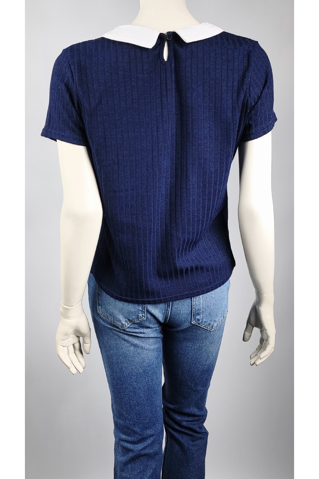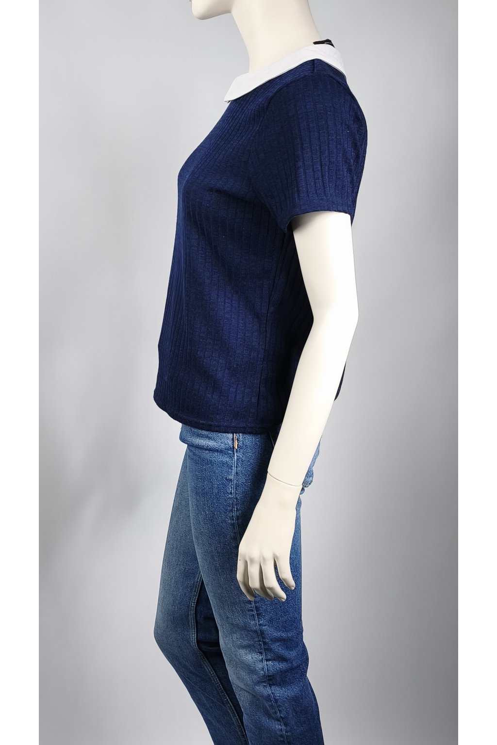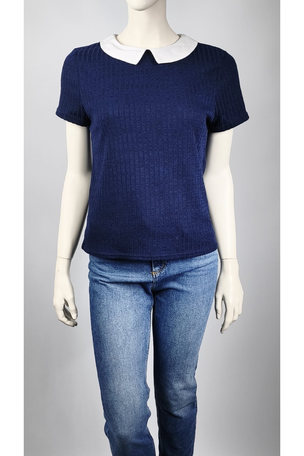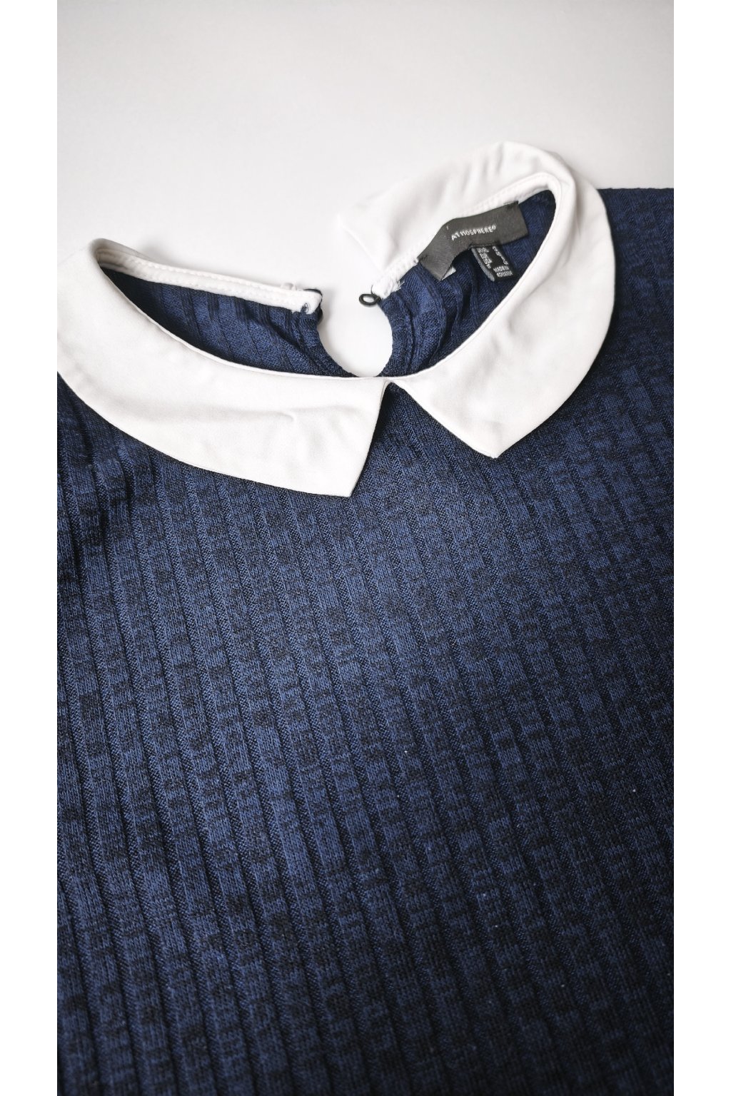Elegantný modrý top s bielym golierom od značky ATMOSPHERE.