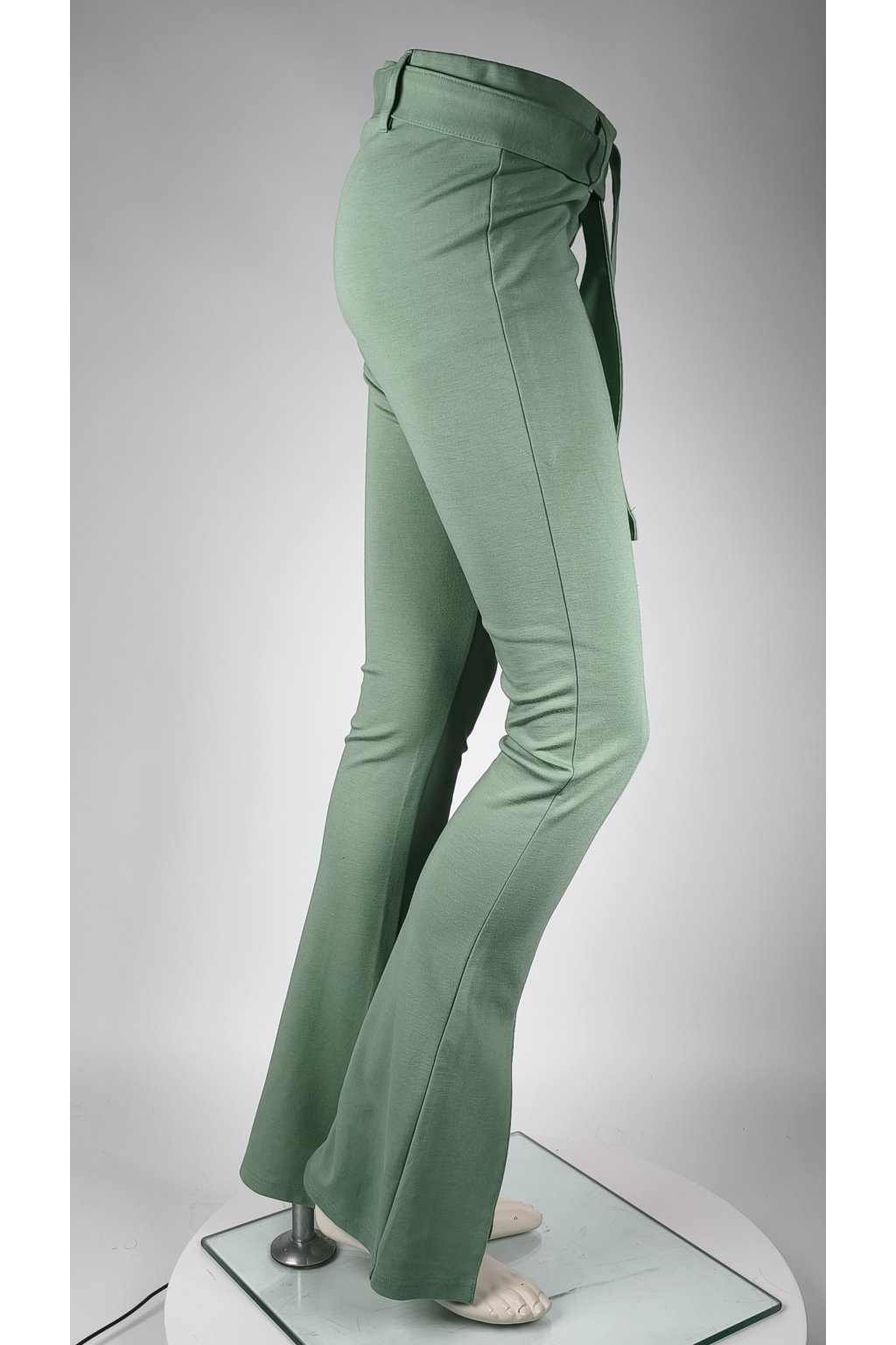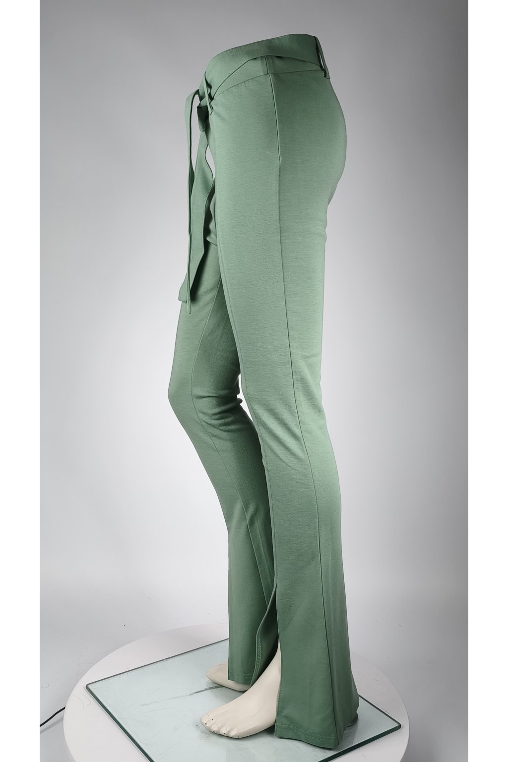 Štýlové zelené nohavice s pásikom a rozparkami.