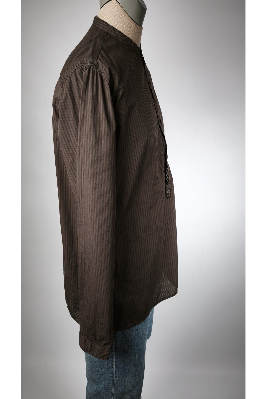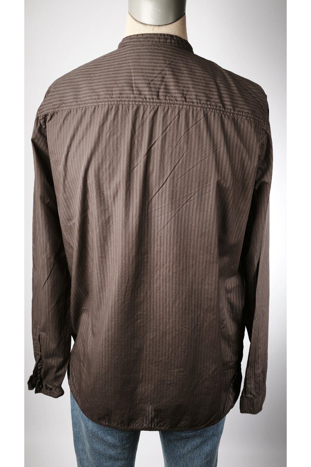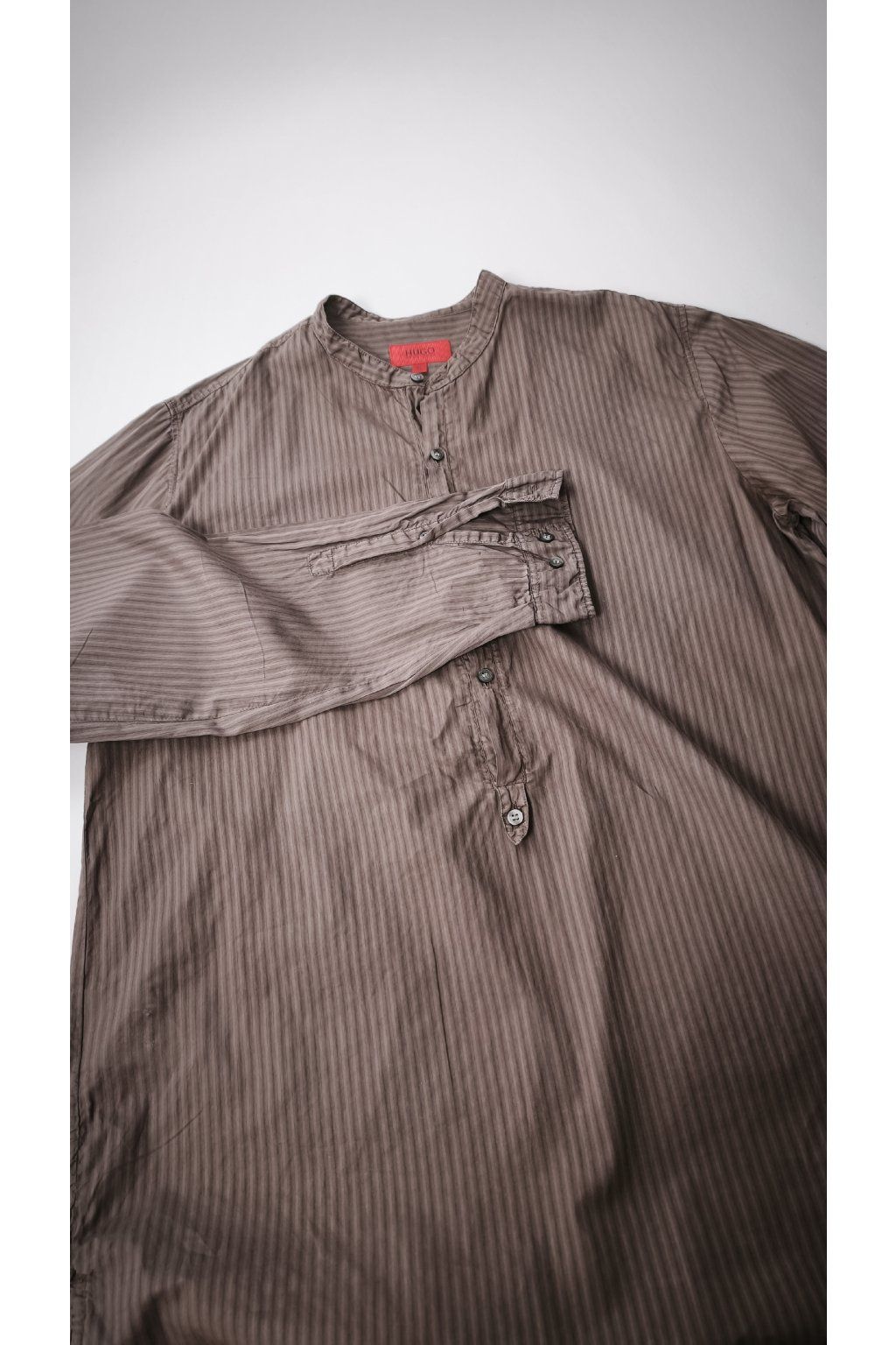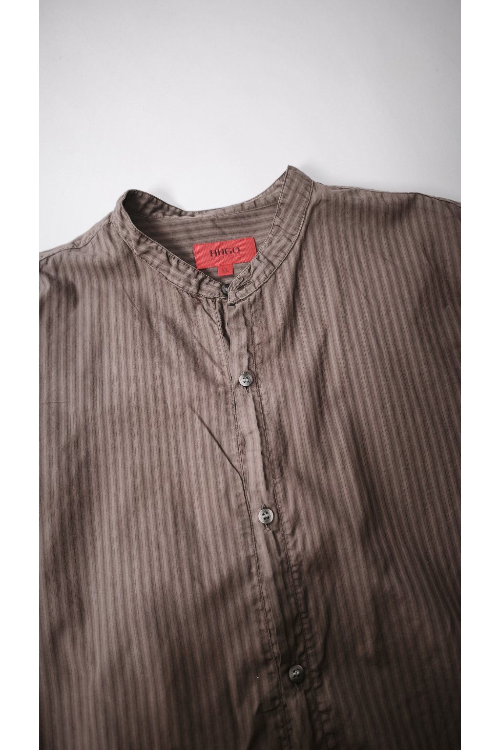 Elegantná hnedá pánska košeľa HUGO BOSS s jemným prúžkom a stojáčikom.