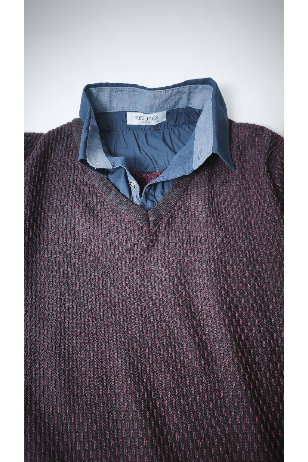 Elegantný vínový sveter RED JACK s V-výstrihom v XL veľkosti.
