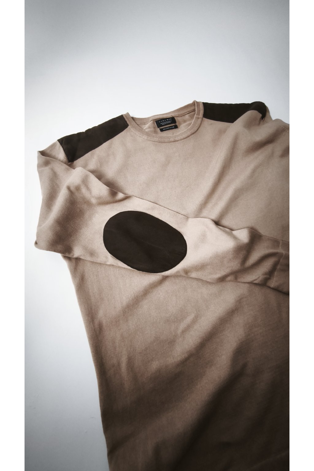 Elegantný pánsky sveter od ZARA v jemnej béžovej farbe s kontrastnými tmavšími detailmi na ramenách. Tento sveter je ideálny na každodenné nosenie, poskytuje pohodlie a štýl v jednom.