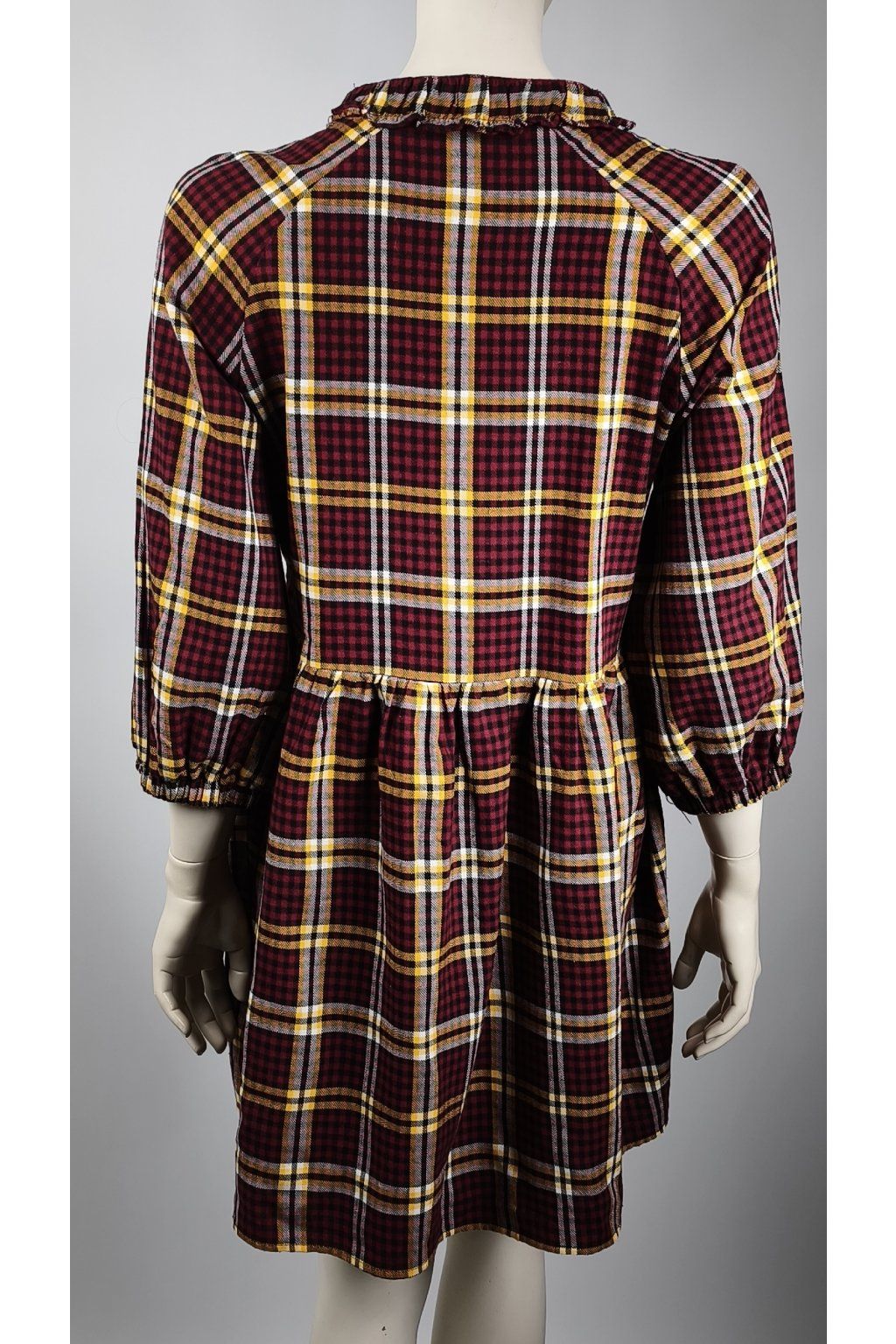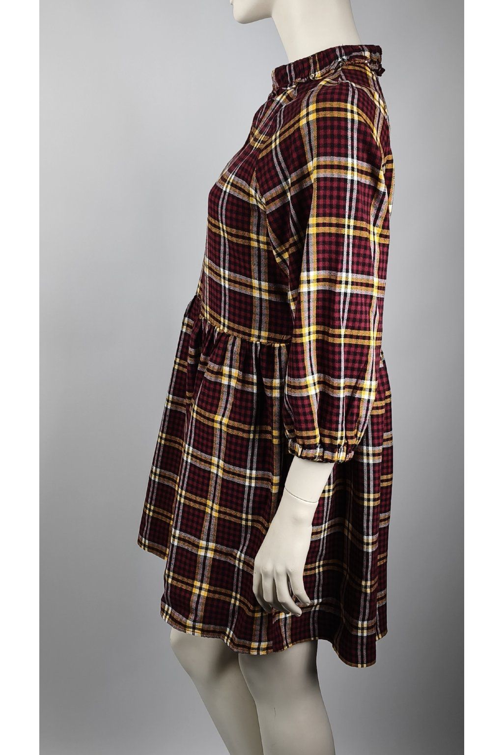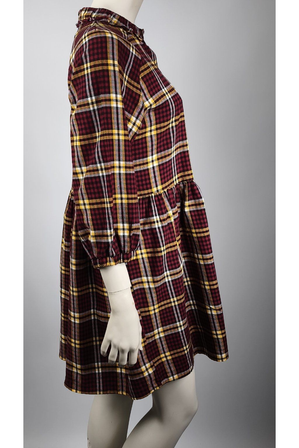 Šaty FISHERFIELD vynikajú svojím výrazným kockovaným vzorom v odtieňoch červenej, žltej a bielej. Majú moderný strih s trojštvrťovými rukávmi a jemne naberanou sukňou, ktorá dodáva šatám ženský šarm.