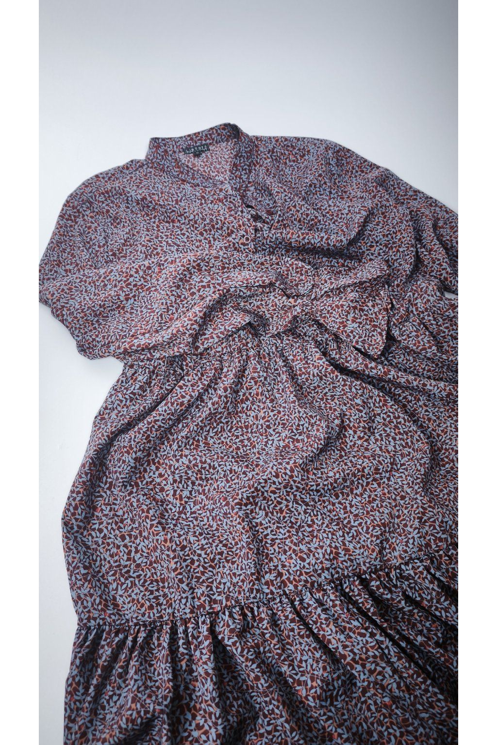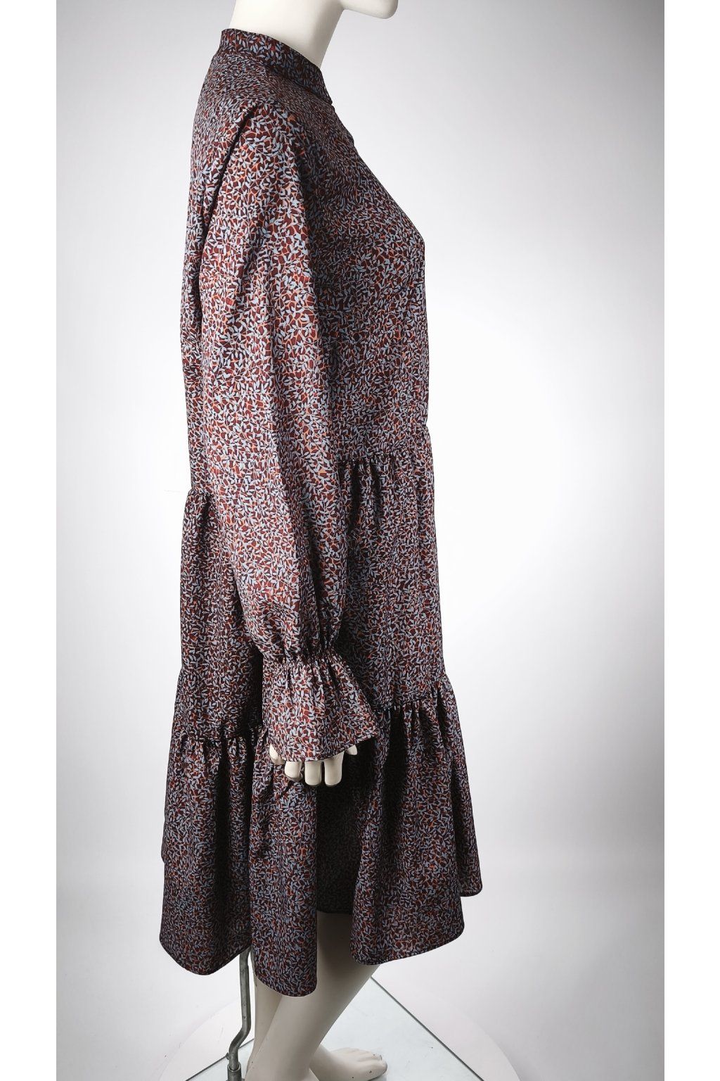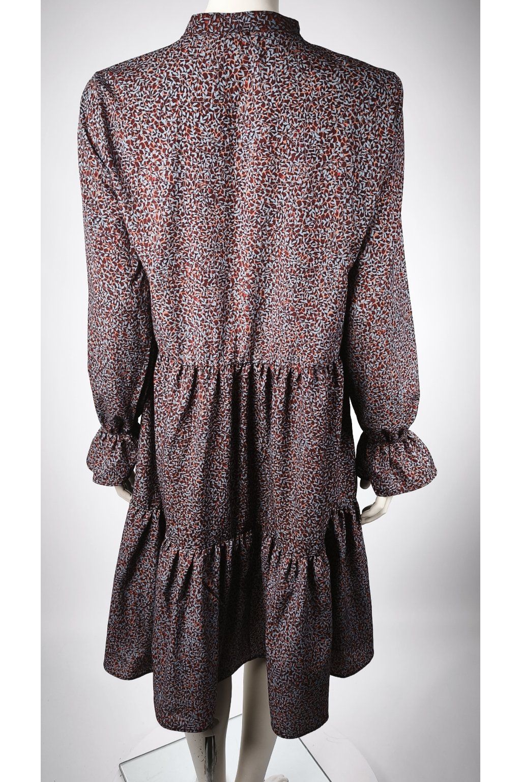 Elegantné šaty LIBERTÉ vynikajú jemným, abstraktným vzorom v tlmených farbách, ktoré dodávajú sofistikovaný vzhľad. Strih s volánmi a dlhými rukávmi je ideálny pre každodenné nosenie aj špeciálne príležitosti.