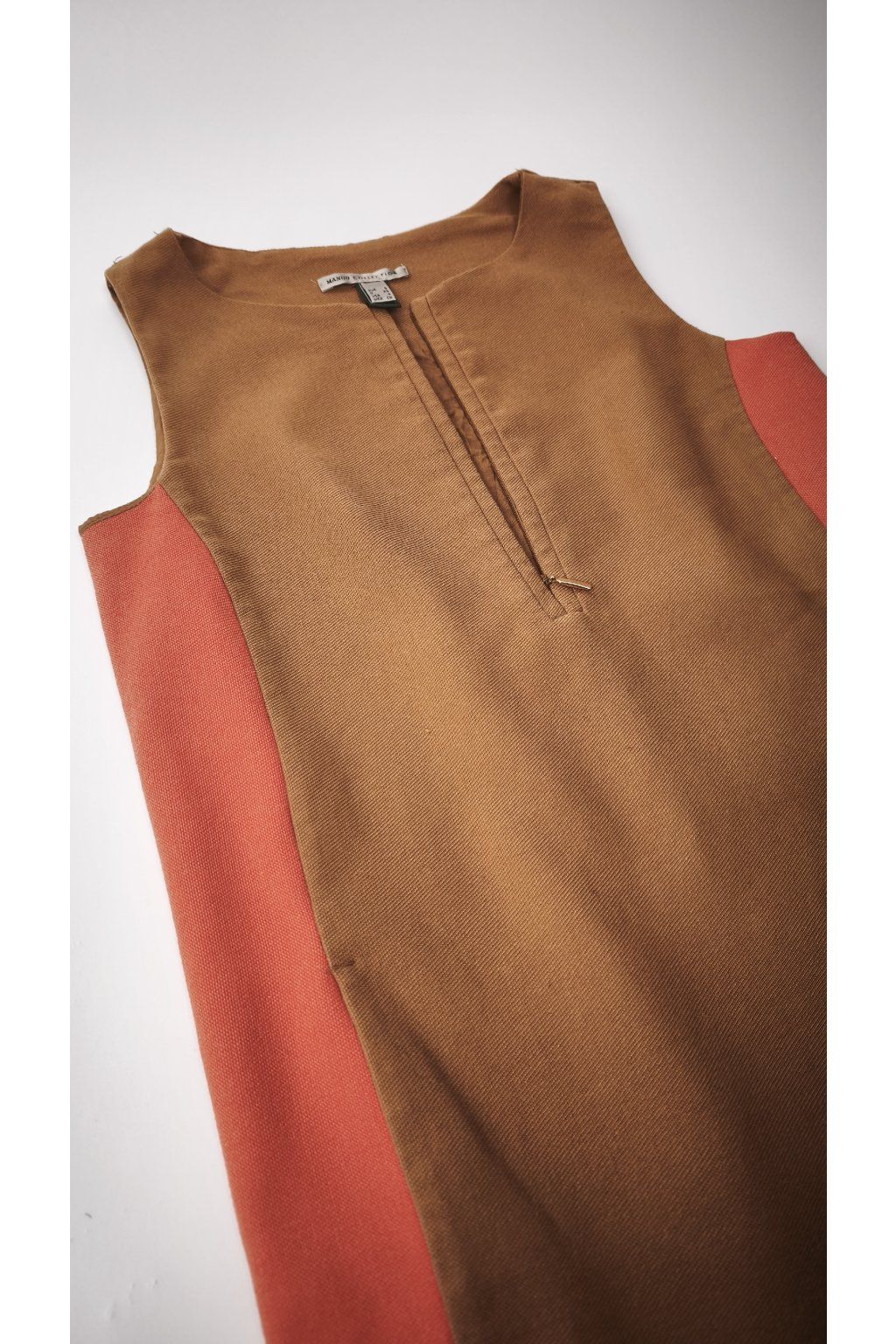 Elegantné šaty od značky MANGO vynikajú svojím jednoduchým, ale sofistikovaným dizajnom. Hnedý základ je doplnený čiernym lemom, ktorý pridáva kontrast a štýl. Tento kúsok je ideálny na každodenné nosenie aj špeciálne príležitosti.