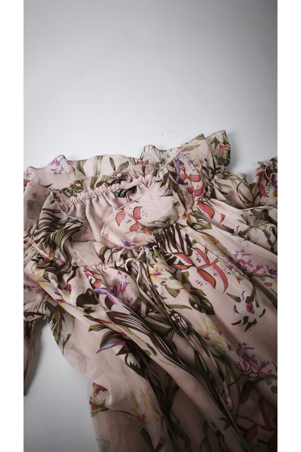 Šaty ONLY ponúkajú romantický vzhľad s jemným kvetinovým vzorom na svetlom pozadí. Volány na rukávoch a spodnom leme dodávajú ľahkosť a ženskosť. Ideálne pre letné dni.