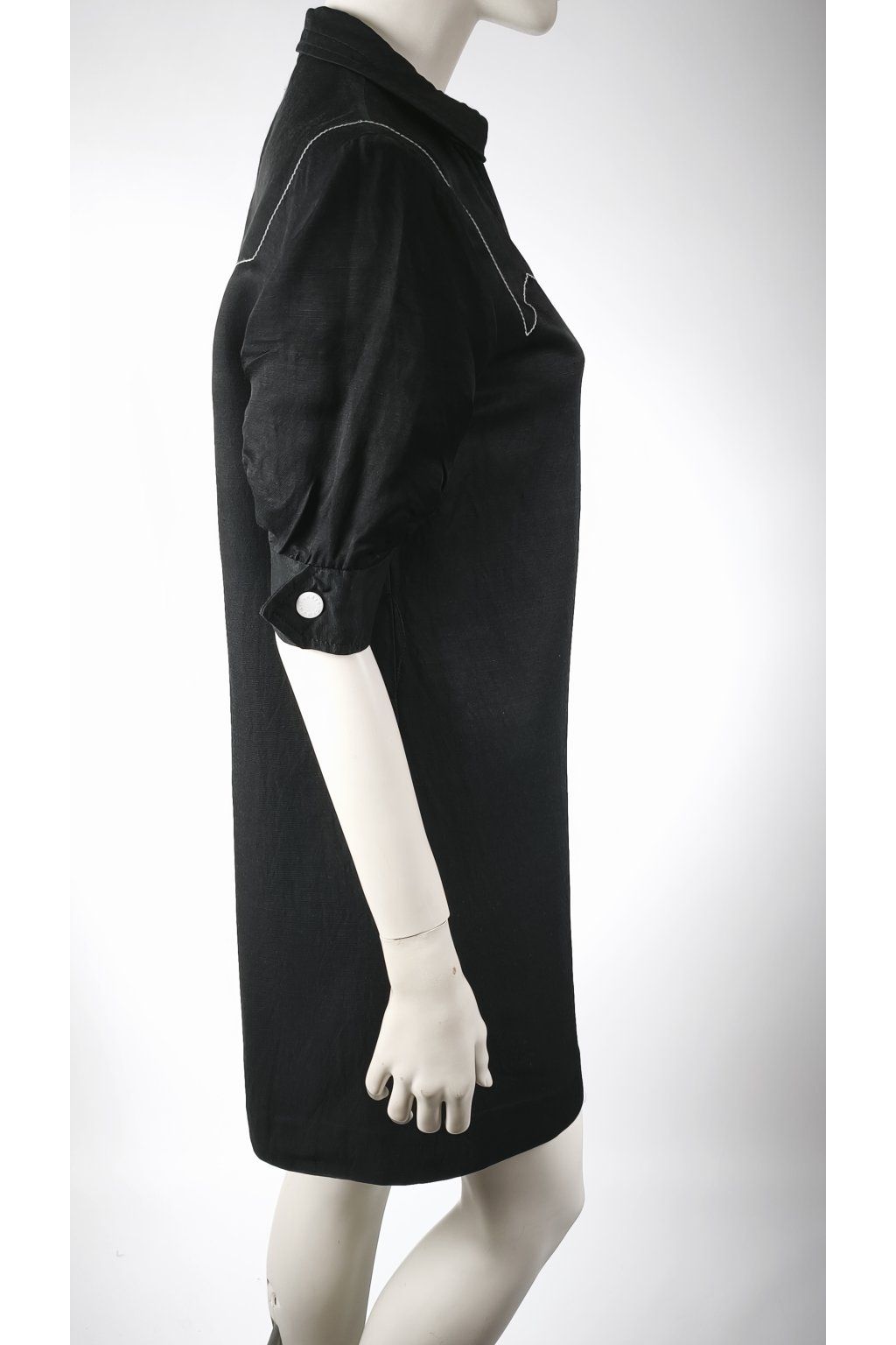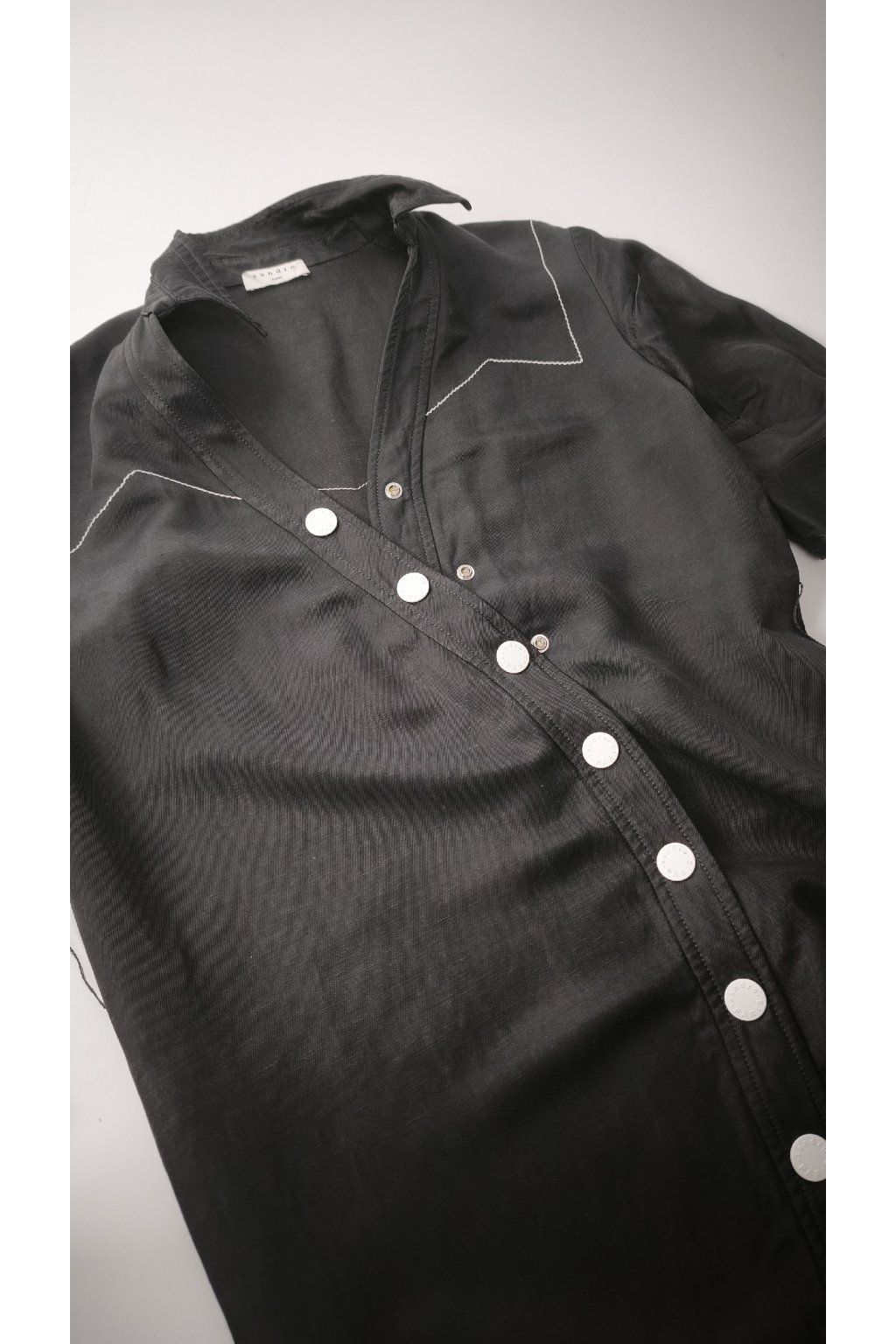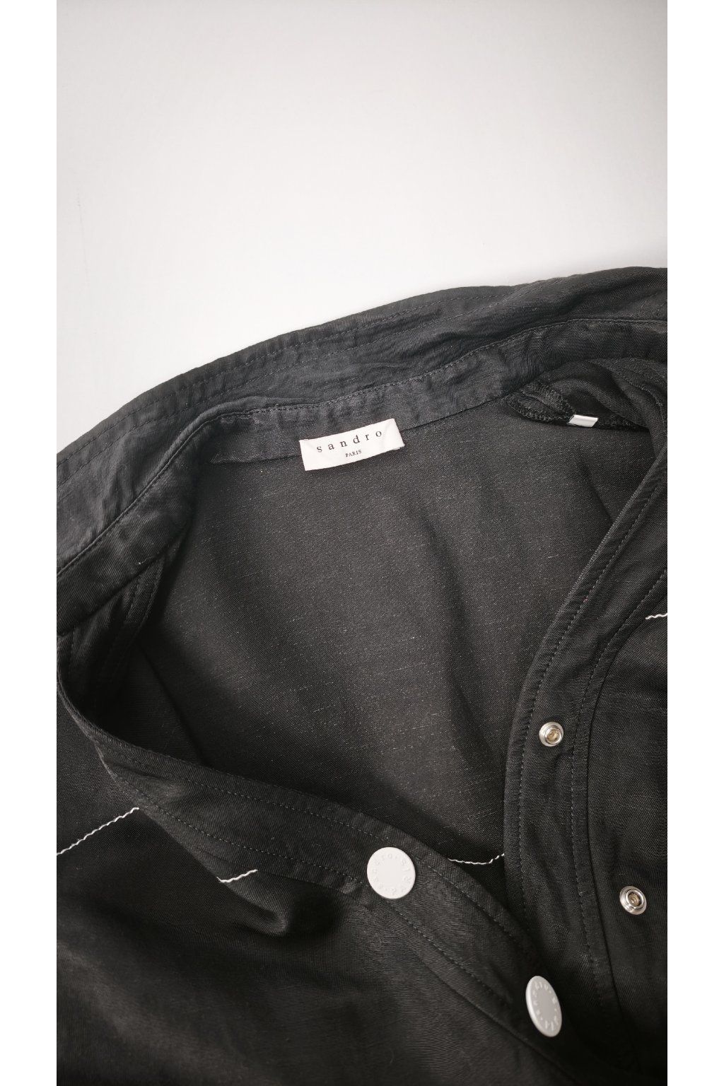 Elegantné čierne šaty značky SANDRO PARIS prinášajú sofistikovaný vzhľad s výraznými bielymi gombíkmi a jemnými detailmi. Tento vintage kúsok je ideálny pre tých, ktorí ocenia nadčasový štýl, aj keď chýba pôvodný opasok.