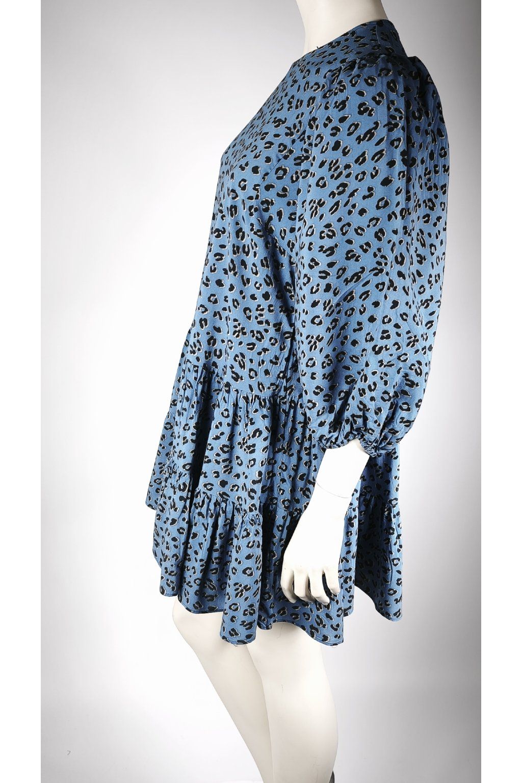 Elegantné modré šaty s výrazným leopardím vzorom, ktoré pridajú vášmu vzhľadu šmrnc. Voľný strih a dlhé rukávy dodávajú šatám pohodlný a súčasne módny vzhľad.