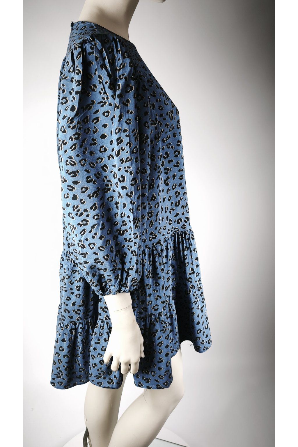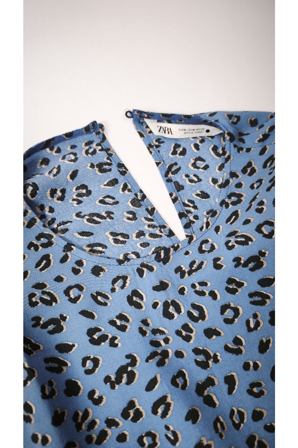Štýlové modré šaty s leopardím vzorom od ZARA.