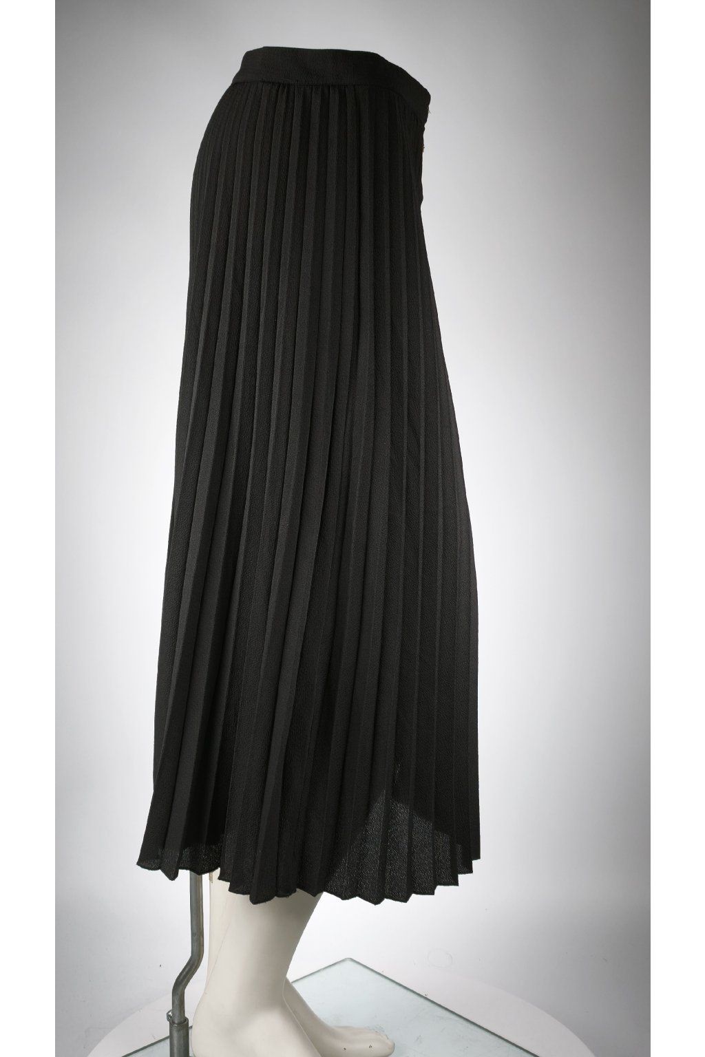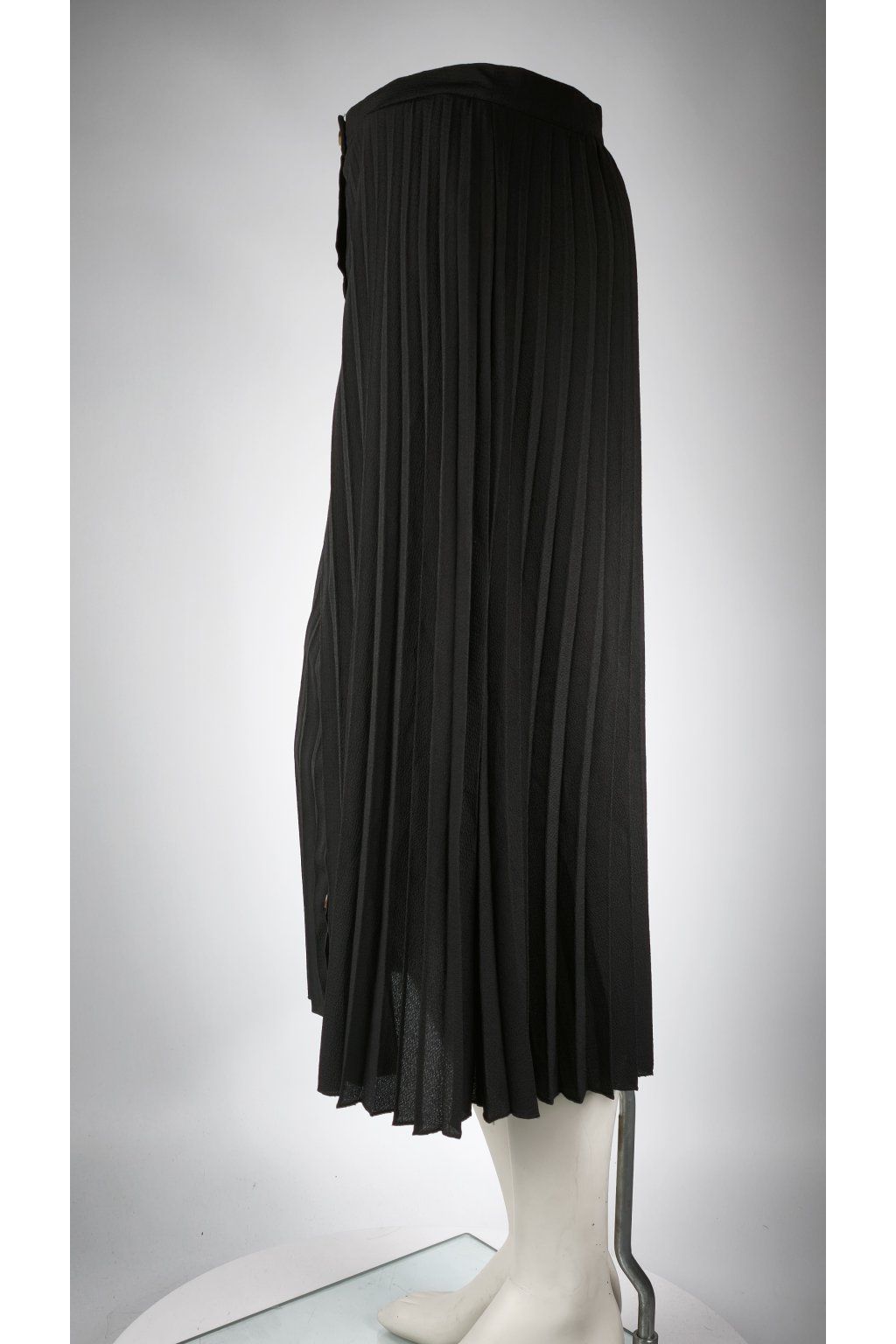 Elegantná čierna plisovaná sukňa s gombíkmi.