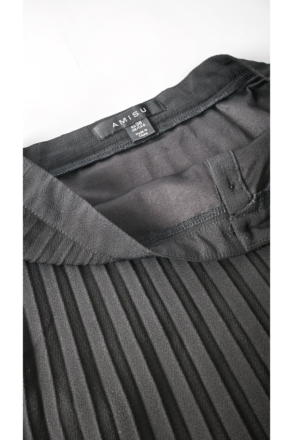 Táto čierna plisovaná sukňa od značky AMISU je elegantným kúskom, ktorý vynikne v každom šatníku. Predné zapínanie na gombíky dodáva sukni sofistikovaný vzhľad, zatiaľ čo plisovanie zaručuje jemný pohyb látky.
