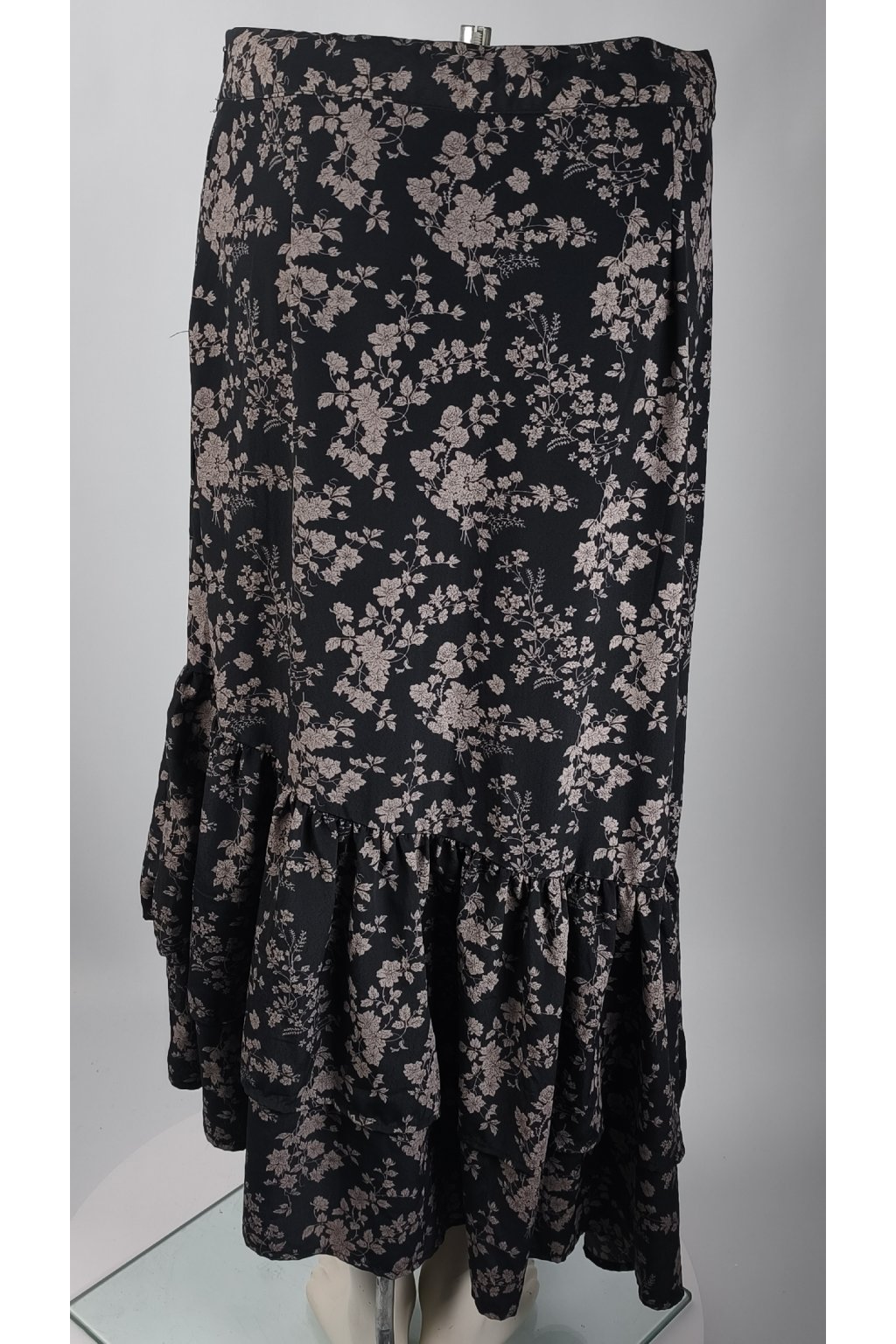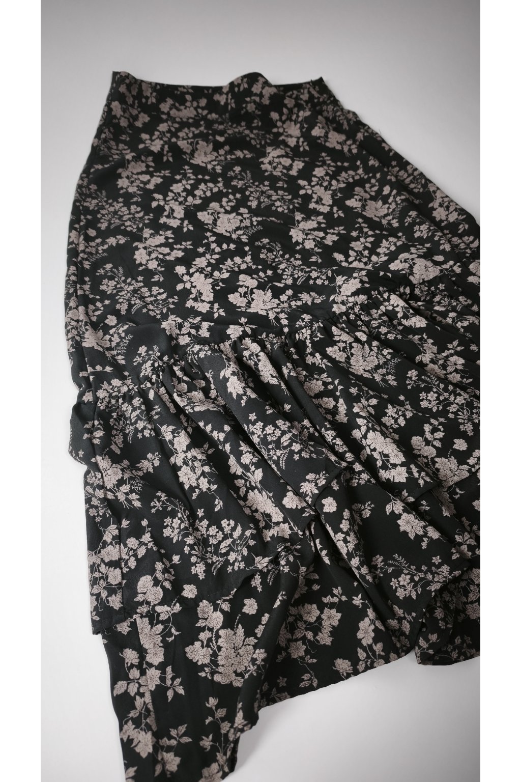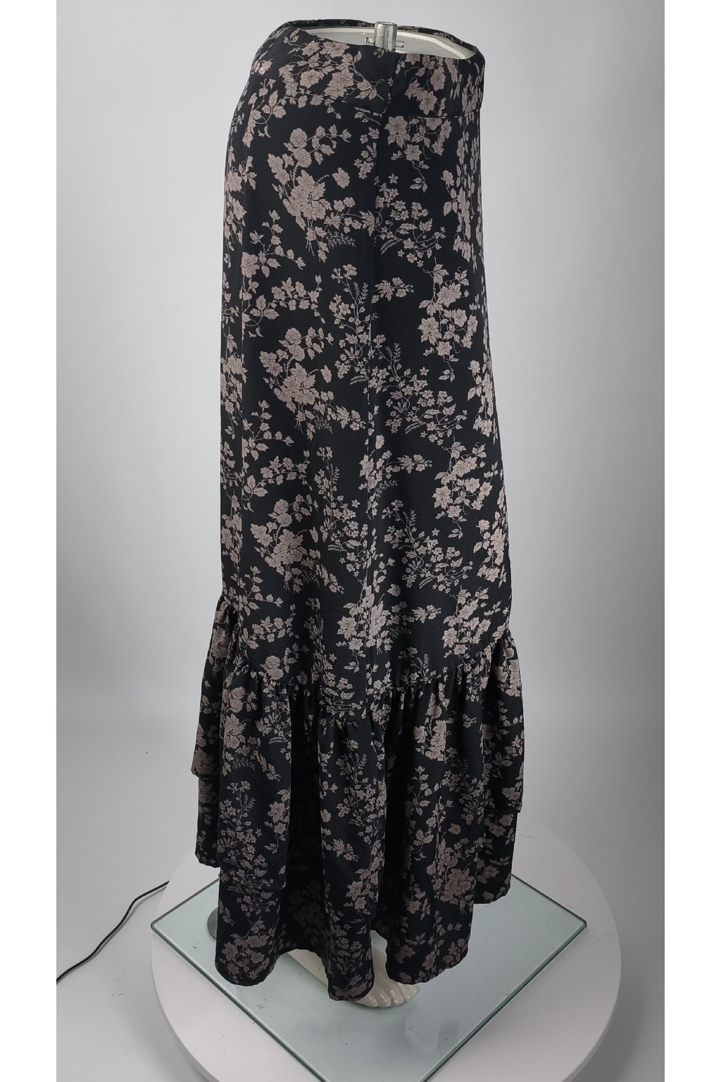 Elegantná čierna sukňa s kvetinovým vzorom, ktorá dodá vášmu štýlu jemný romantický nádych.