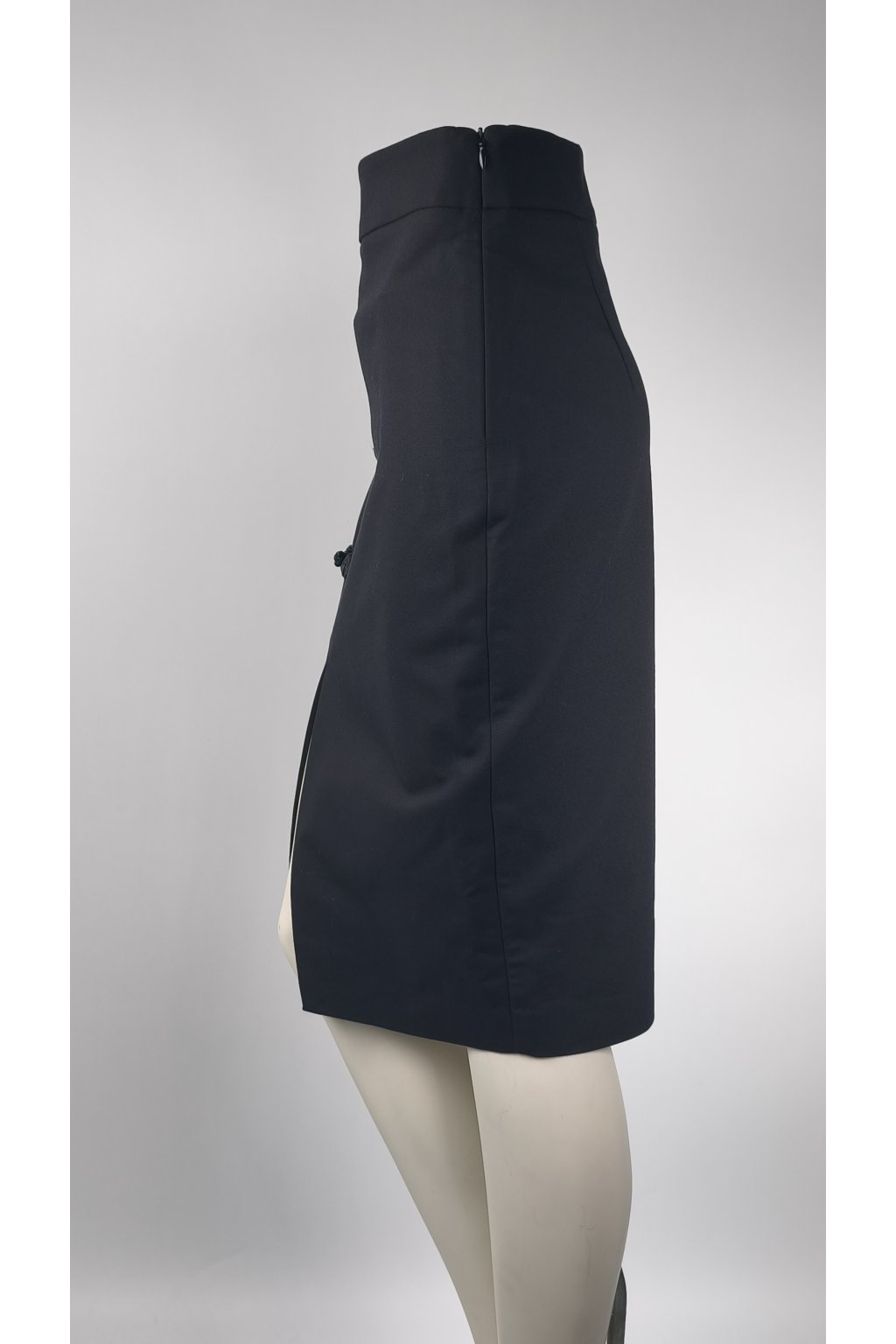 Táto čierna sukňa od ZARA je elegantným kúskom, ktorý zaujme svojimi ozdobnými uzlami na boku a decentným rozparkom. Je ideálna na formálne príležitosti aj bežné nosenie.