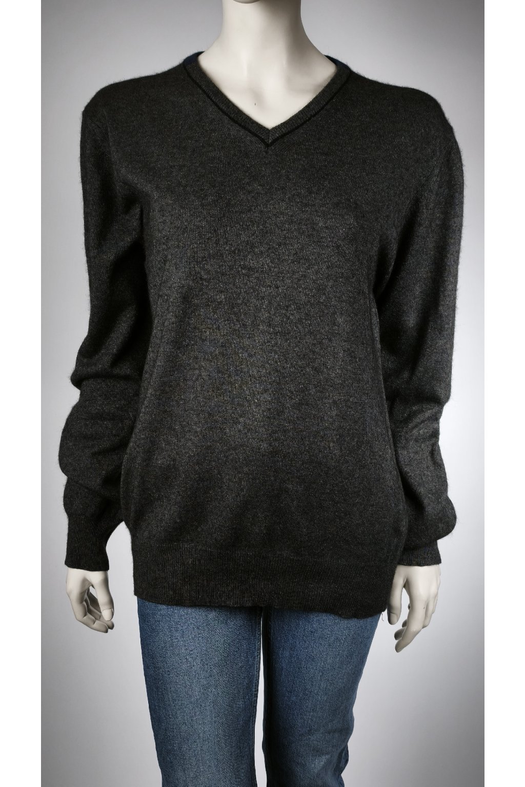 Elegantný tmavosivý sveter z jemného hodvábu a kašmíru.